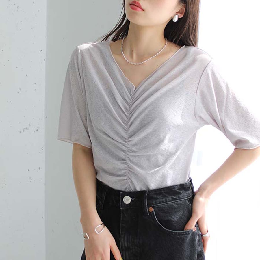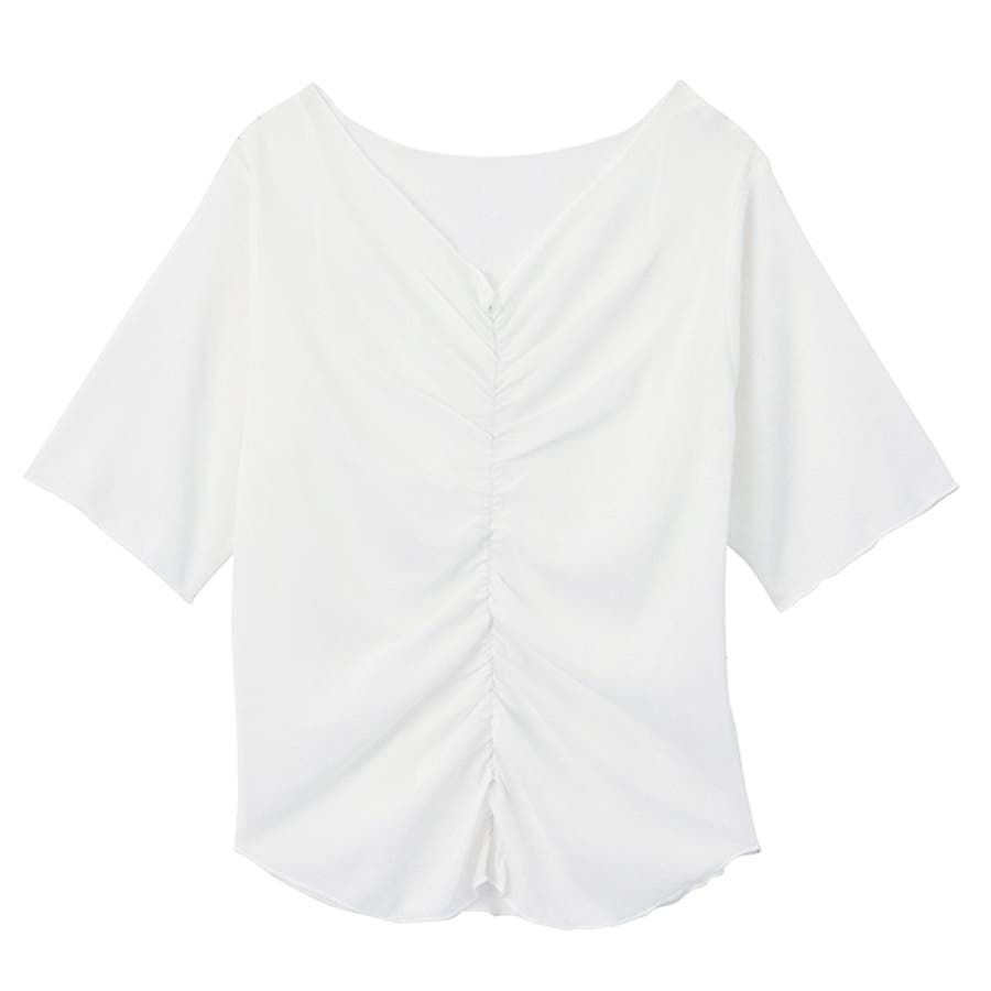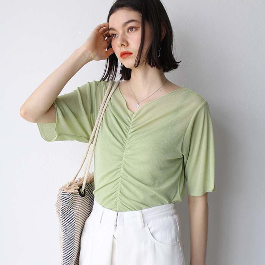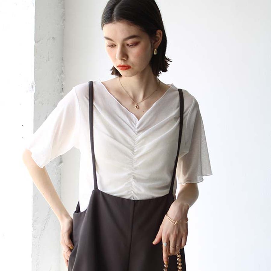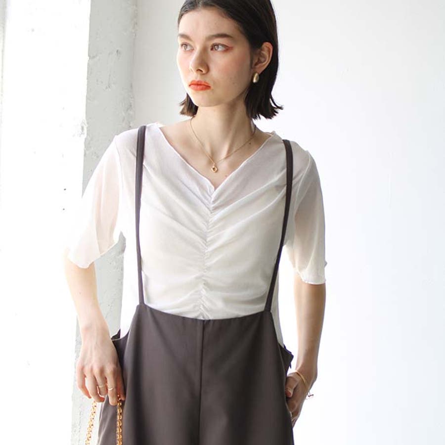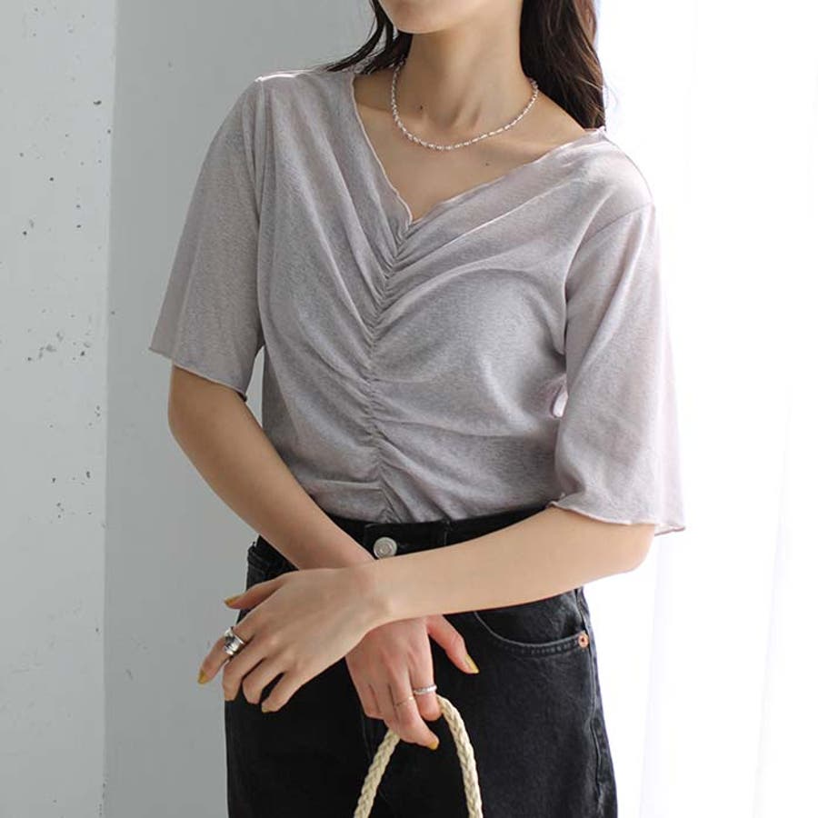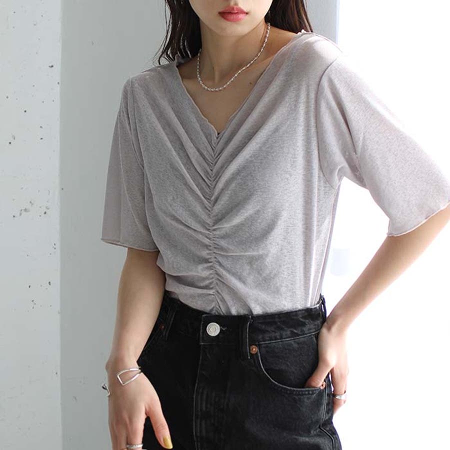 透けてるから黒でも暑苦しく見えにくいし、胸元のギャザーデザインが可愛いです!!そんなに細身ではないのでLにしましたが、程よくゆるっと着れてよかったです!