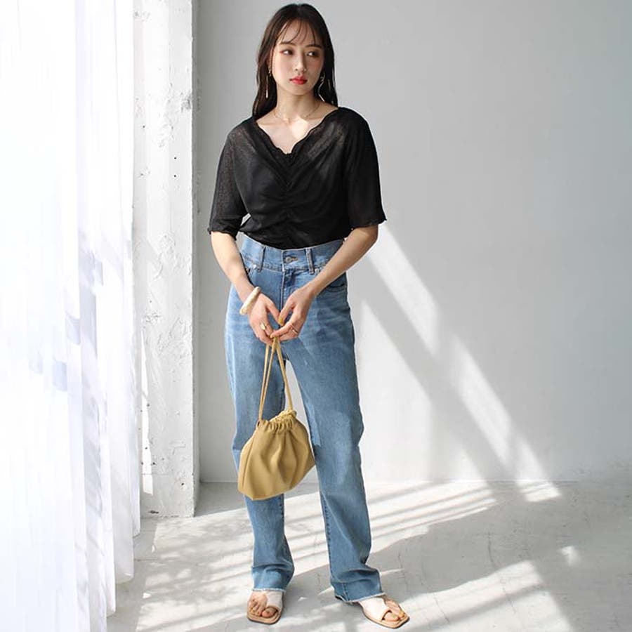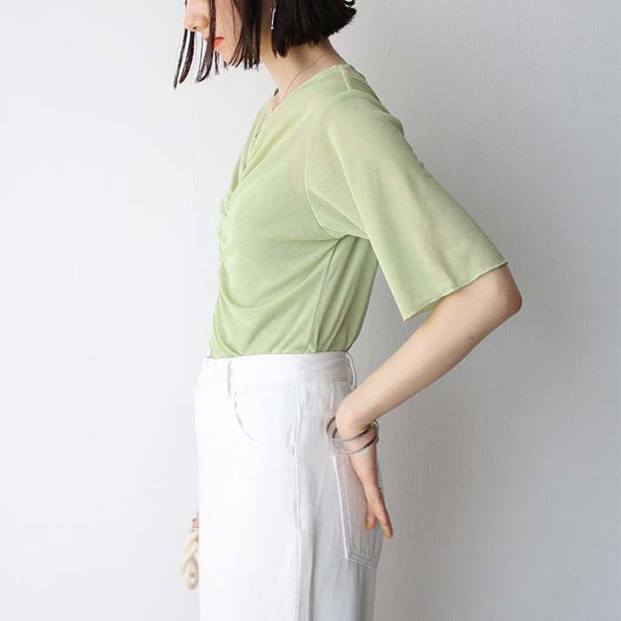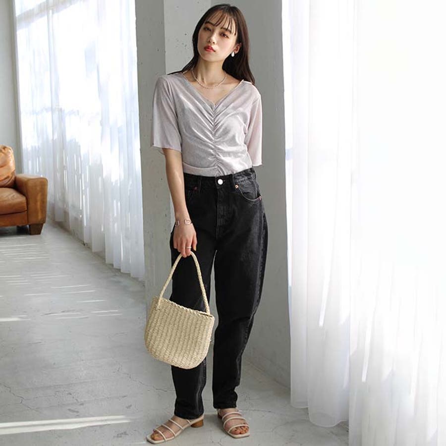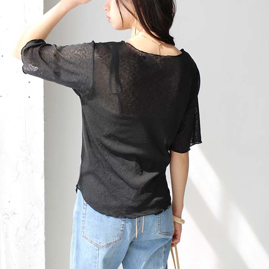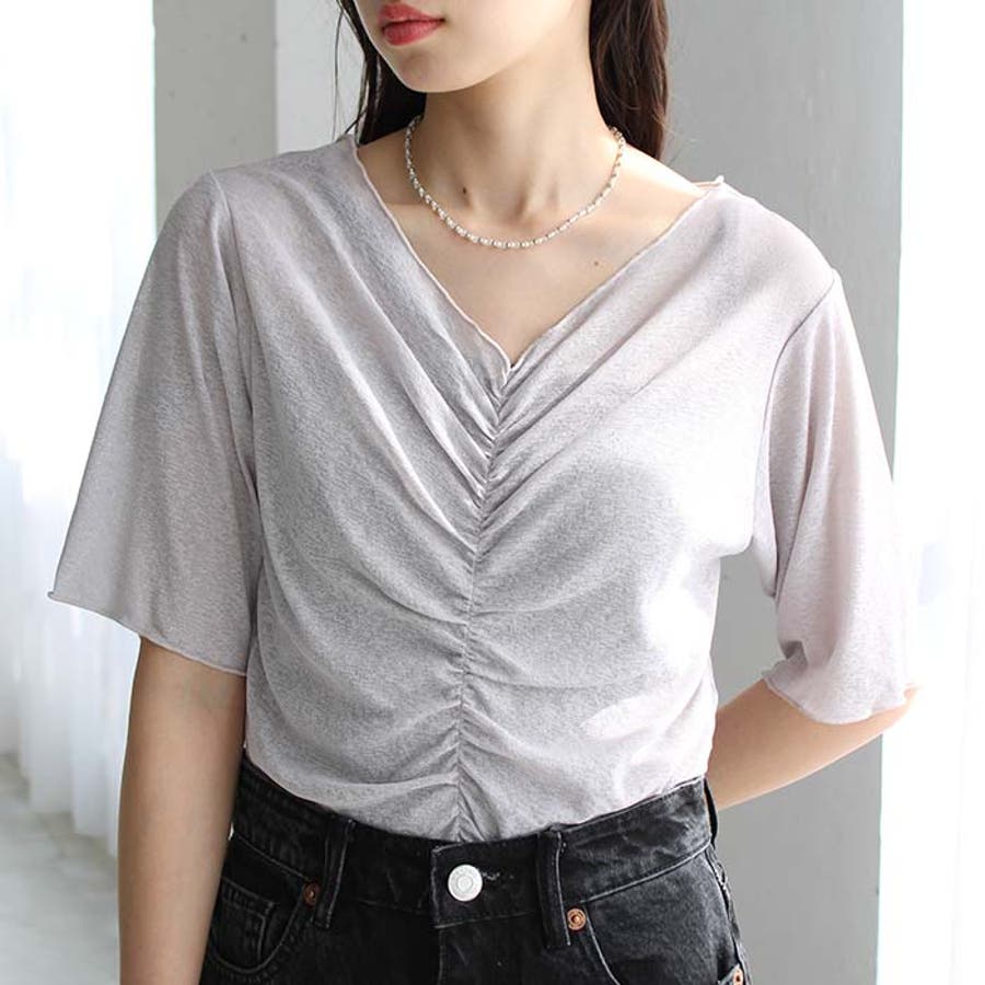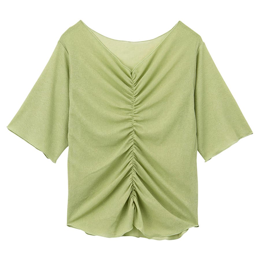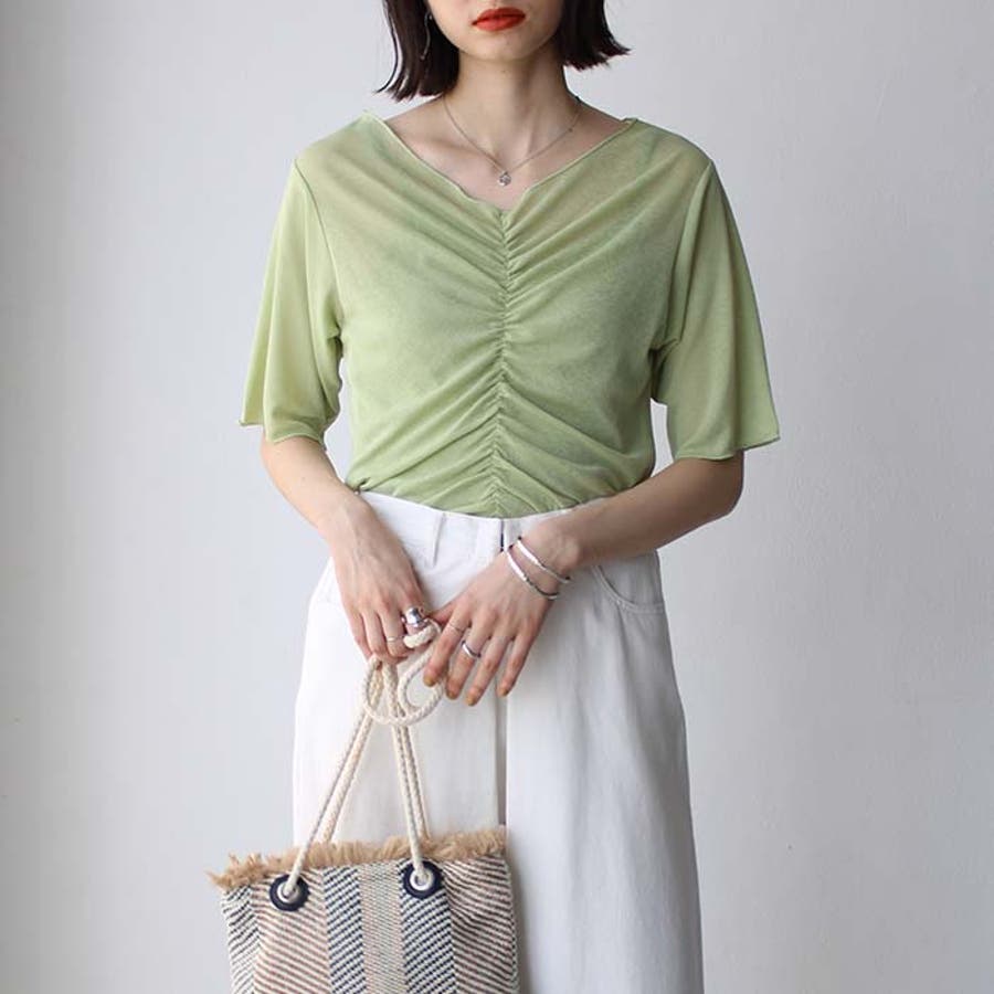 透けてるから黒でも暑苦しく見えにくいし、胸元のギャザーデザインが可愛いです!!そんなに細身ではないのでLにしましたが、程よくゆるっと着れてよかったです!