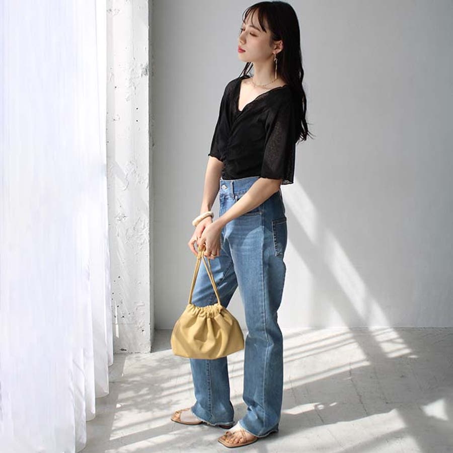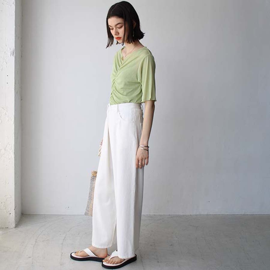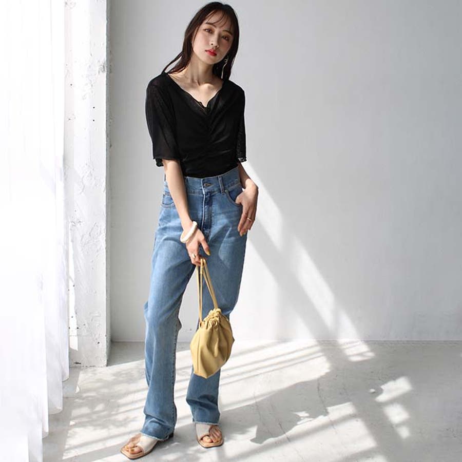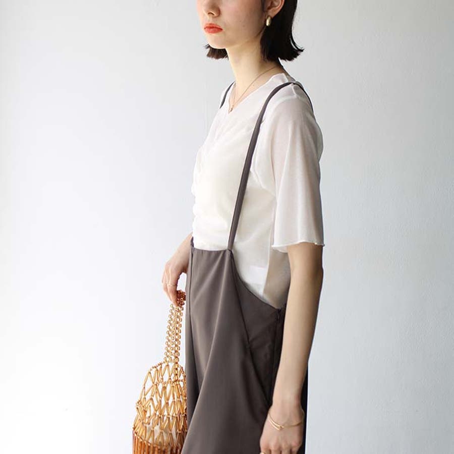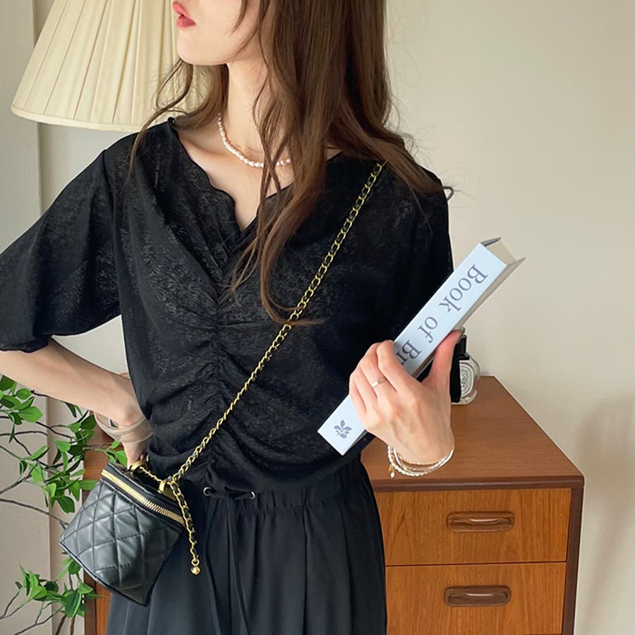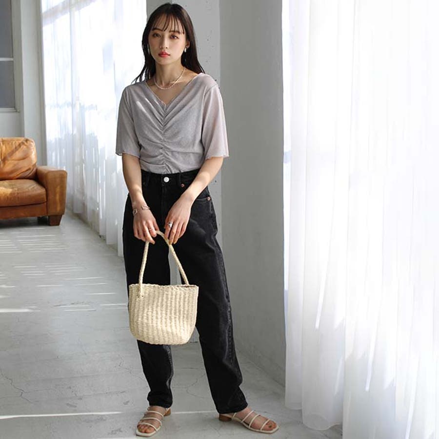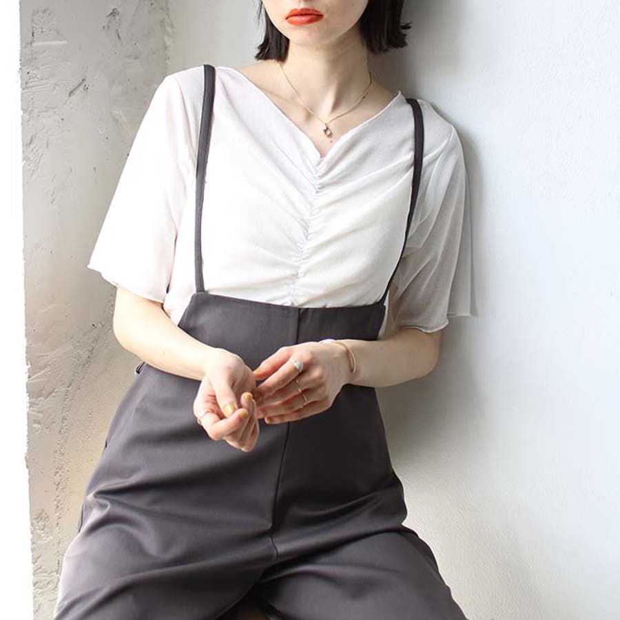 透けてるから黒でも暑苦しく見えにくいし、胸元のギャザーデザインが可愛いです!!そんなに細身ではないのでLにしましたが、程よくゆるっと着れてよかったです!