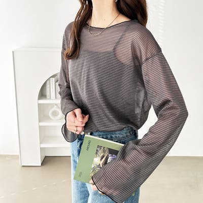トレンドのシアー×ボーダー柄のカットソー素材