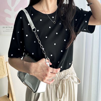 ドット柄刺しゅうがレトロなシルケットTシャツ