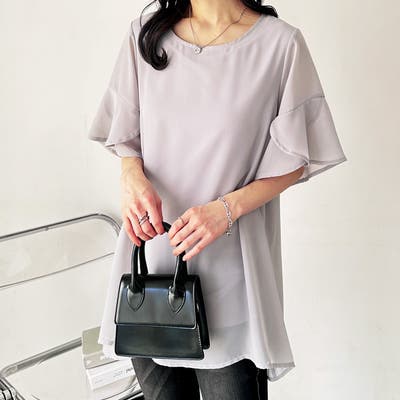 体のラインをカバーするシルエット&ヒップが隠れる丈感で、