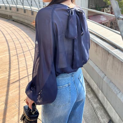 柔らかな印象のシアー素材&大人可愛いがつまった主役級ブラウス。