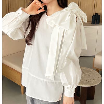 トレンドのリボンディテールを大人っぽく取り入れたデザインブラウス。