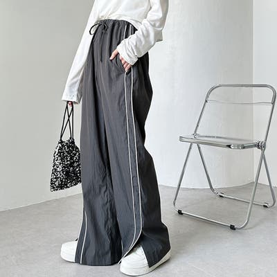 ルーズなワイドシルエットにサイドスリットで抜け感をプラスしたイージーパンツ。