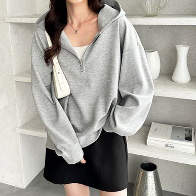 ハーフジップデザインが特別感を演出してくれるデザインパーカー。