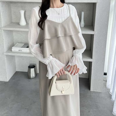 立体感のある胸元のフリルデザインが目を引くキャミワンピース。
