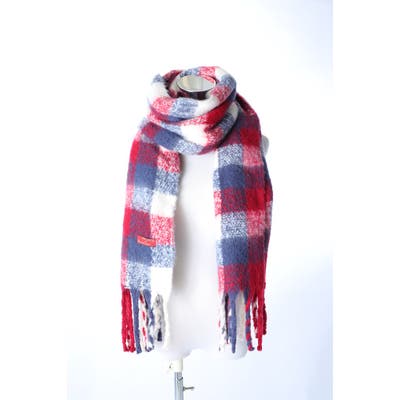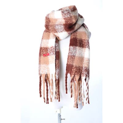 あったかマフラー 大判 ブロックチェック&フリンジ