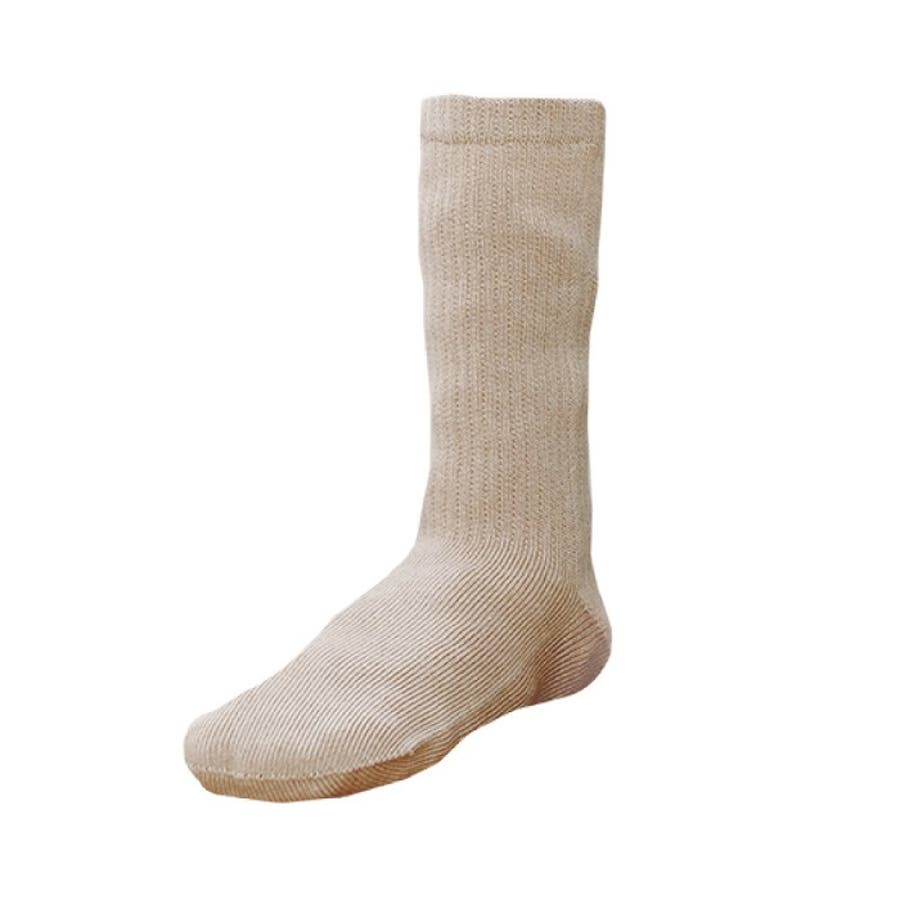 NASAのために開発された快適温度調整素材「アウトラスト」を使用した靴下。体に余分な熱が発生した時(暑い時)は熱を吸収し、皮膚表面温度を下げ、逆に皮膚表面温度が下がると(寒い時)、熱を体に放出し、理想的な温度帯をキープしようとする画期的な新次元靴下。加えて、てぶくろ屋さんならではの無縫製のホールガーメント編み機を使用し、肌への刺激を低減しています。
