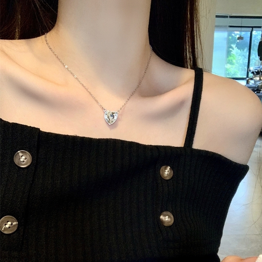 レディース アクセサリー お出かけ 小物 デート 可愛い カジュアル クール 可愛い シルバー ネックレス ハート モチーフ ストーン