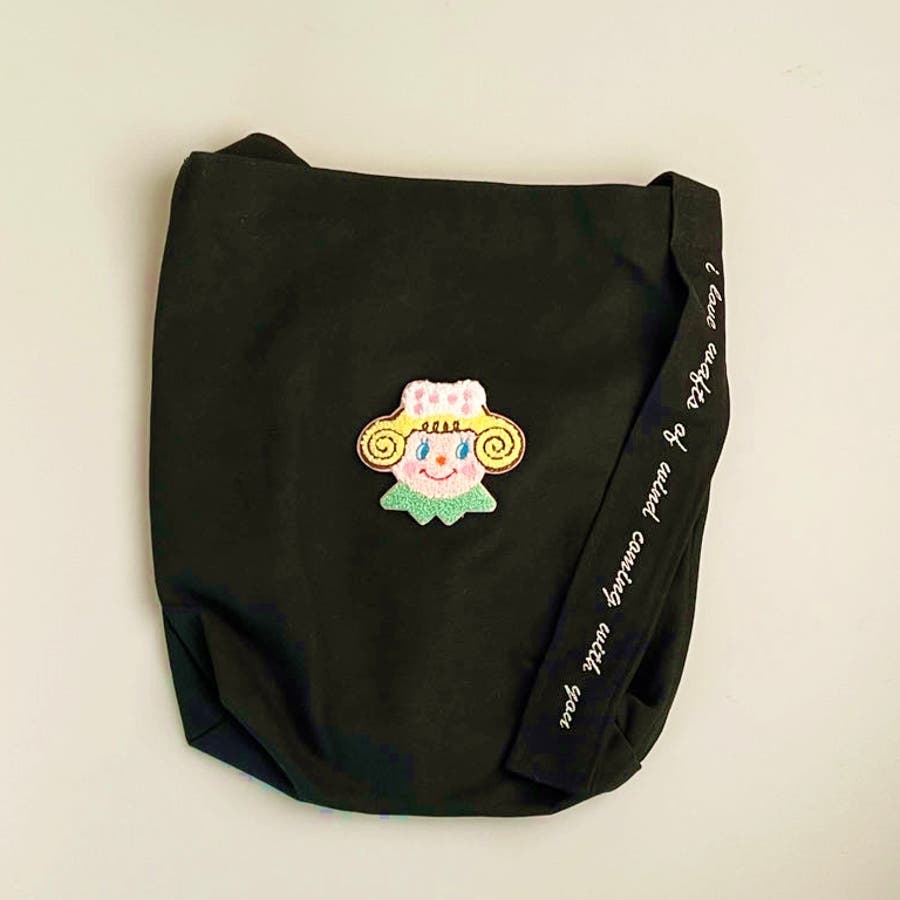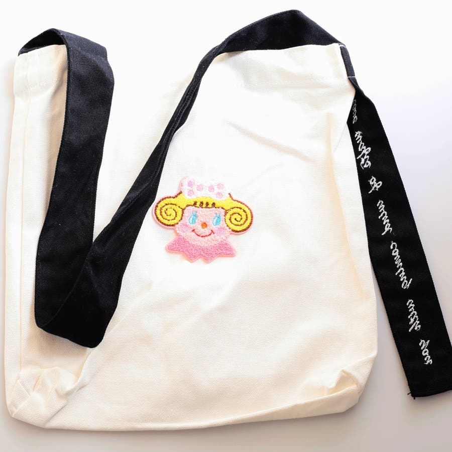 シンプルなデザインのバッグに可愛いワッペンをONしたショルダーバッグ。