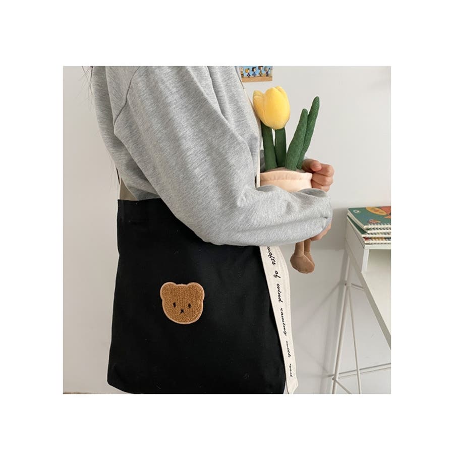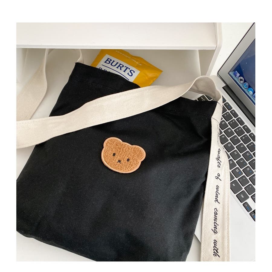 くまさんとショルダー部分のロゴがかわいいです。ショルダー先端裏部分に汚れがあり、ちょっと残念でしたが、交換面倒なのでこのまま使いたいと思います。
