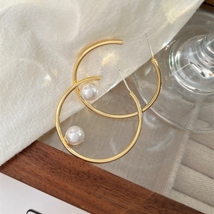 レディース アクセサリー イヤリング ピアス 小顔 ガーリー かわいい パーティー 結婚式 メタル パール フープ ゴールド ピアス