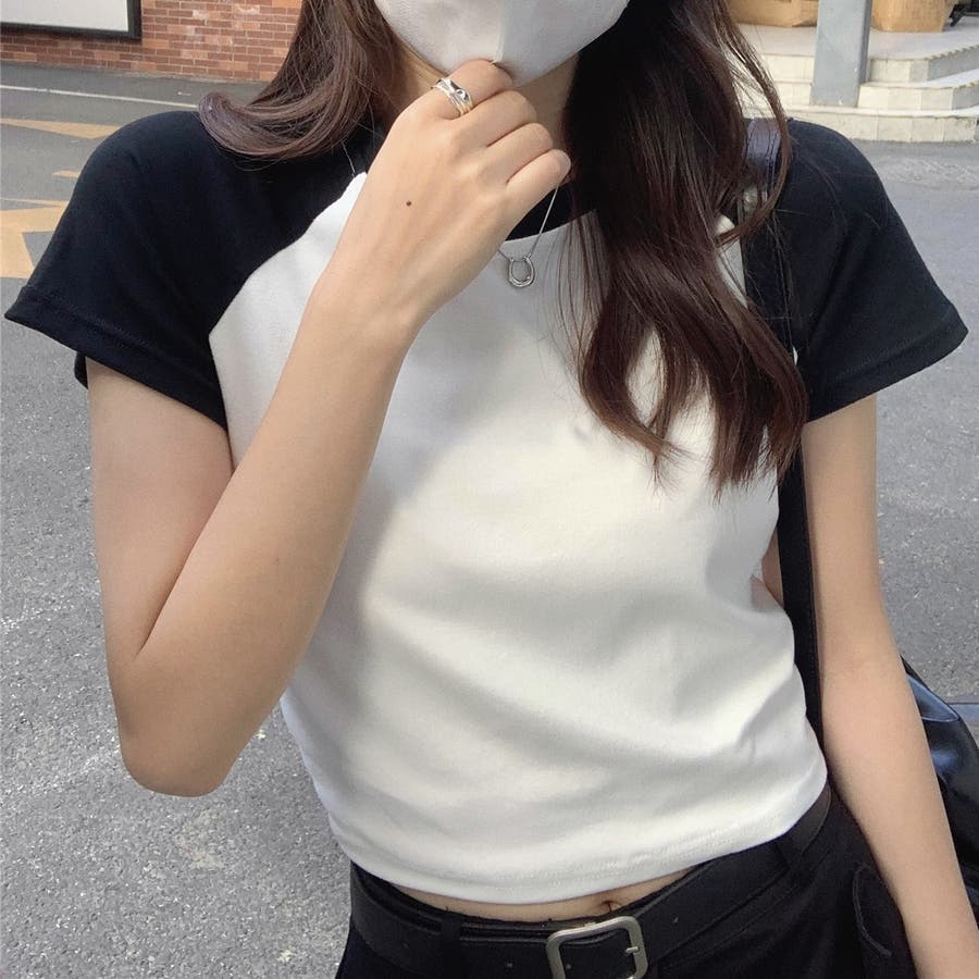 レディース 半袖 トップス カットソー Tシャツ プルオーバー カジュアル 韓国 クルーネック ショート 夏