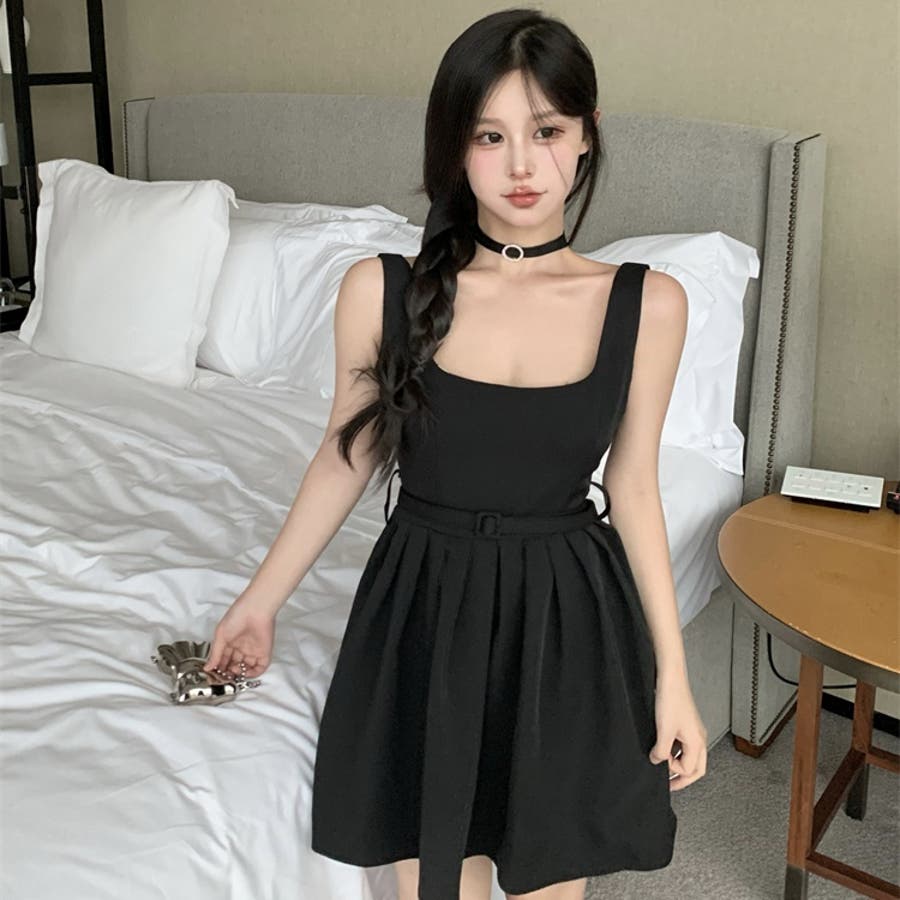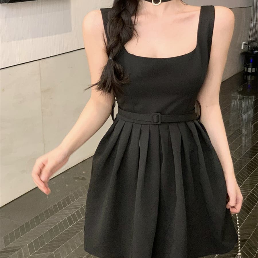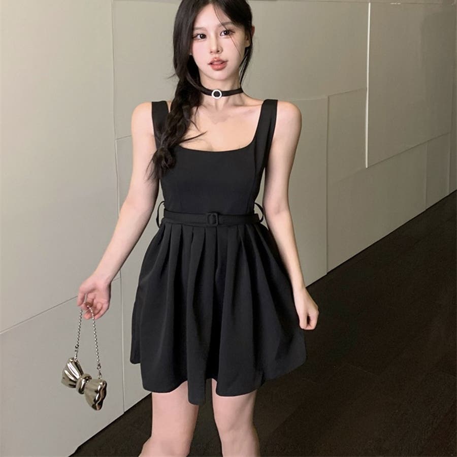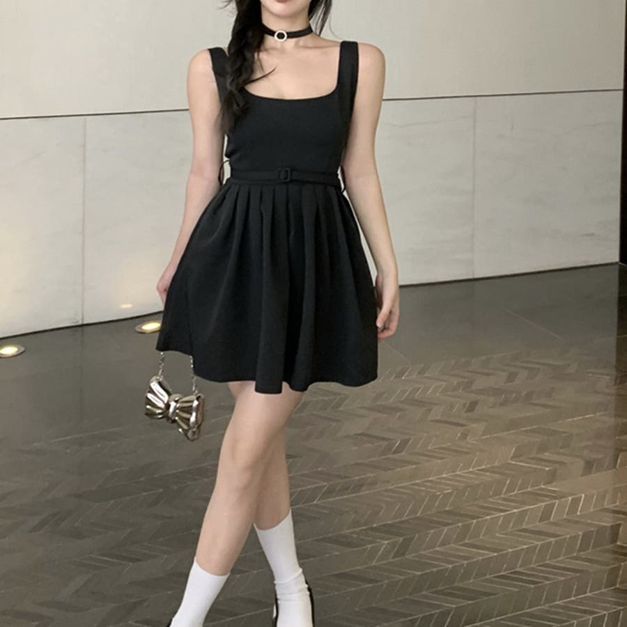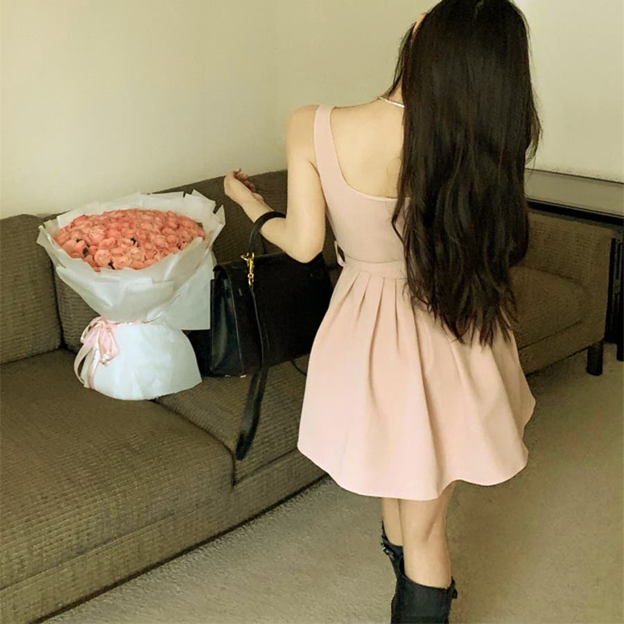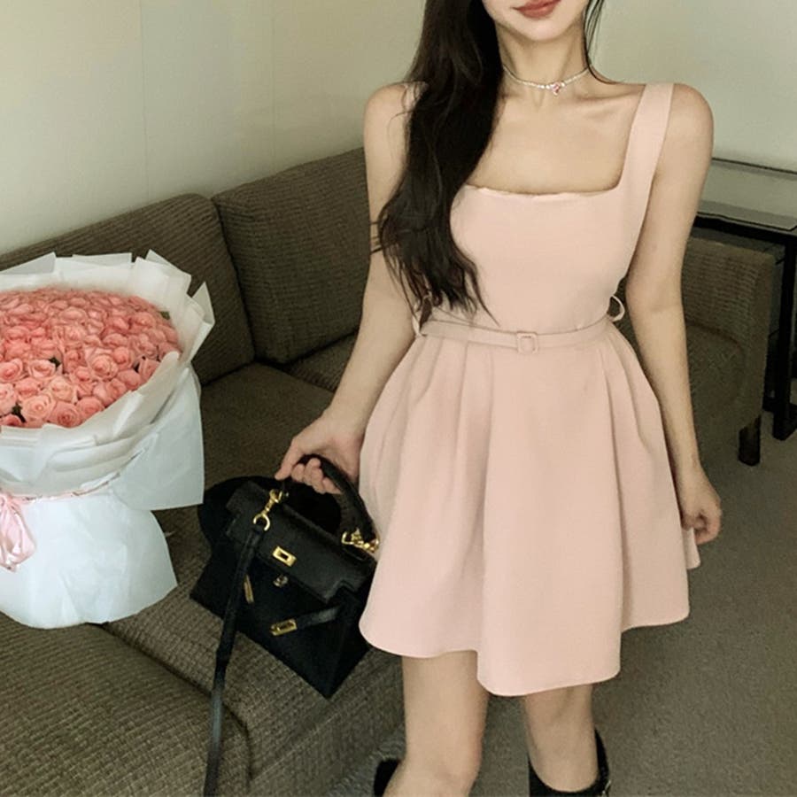 レディース トップス カットソー スカート 大人 フェミニン セクシー Aライン フレア ワンピース 夏 ノースリーブ ウエストマーク 体型カバー