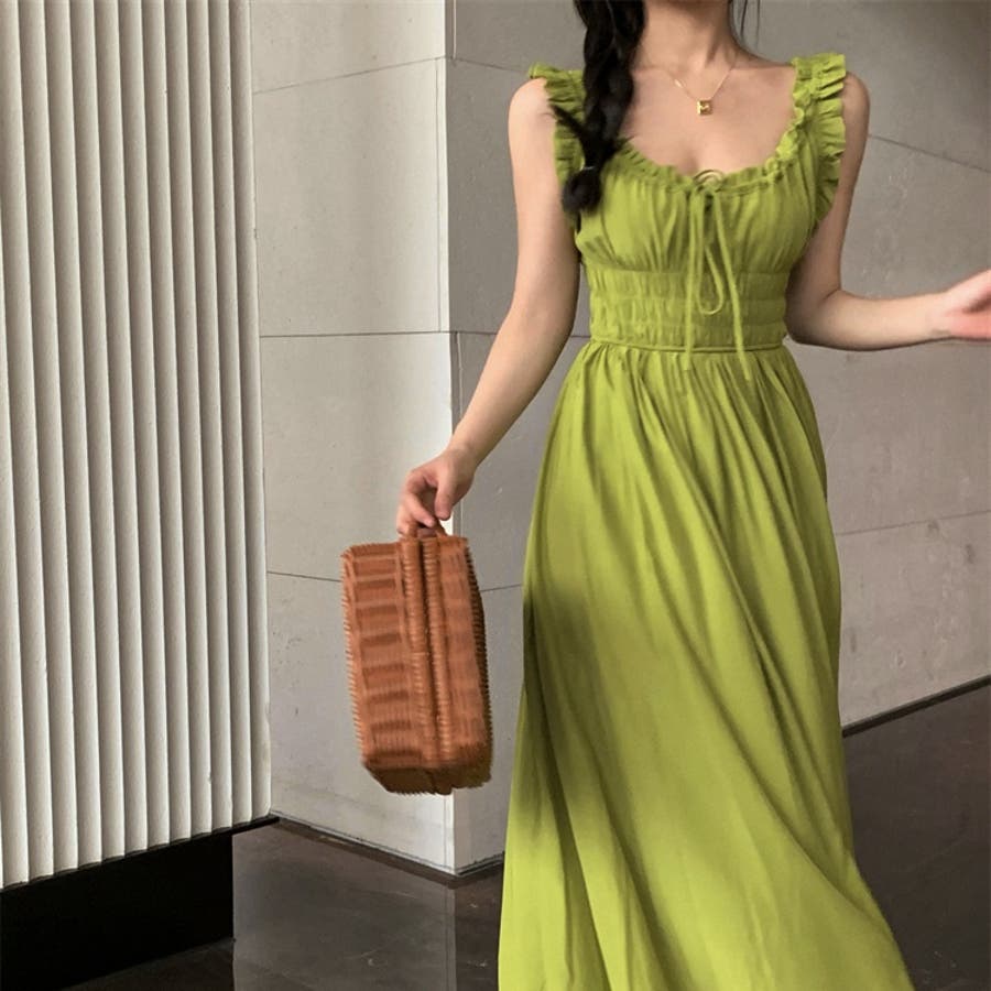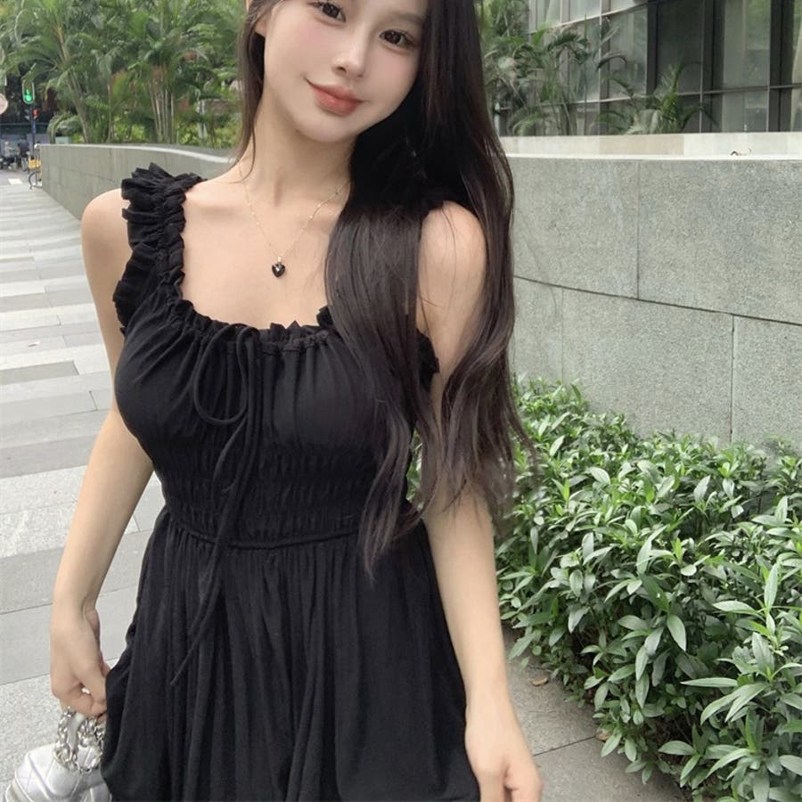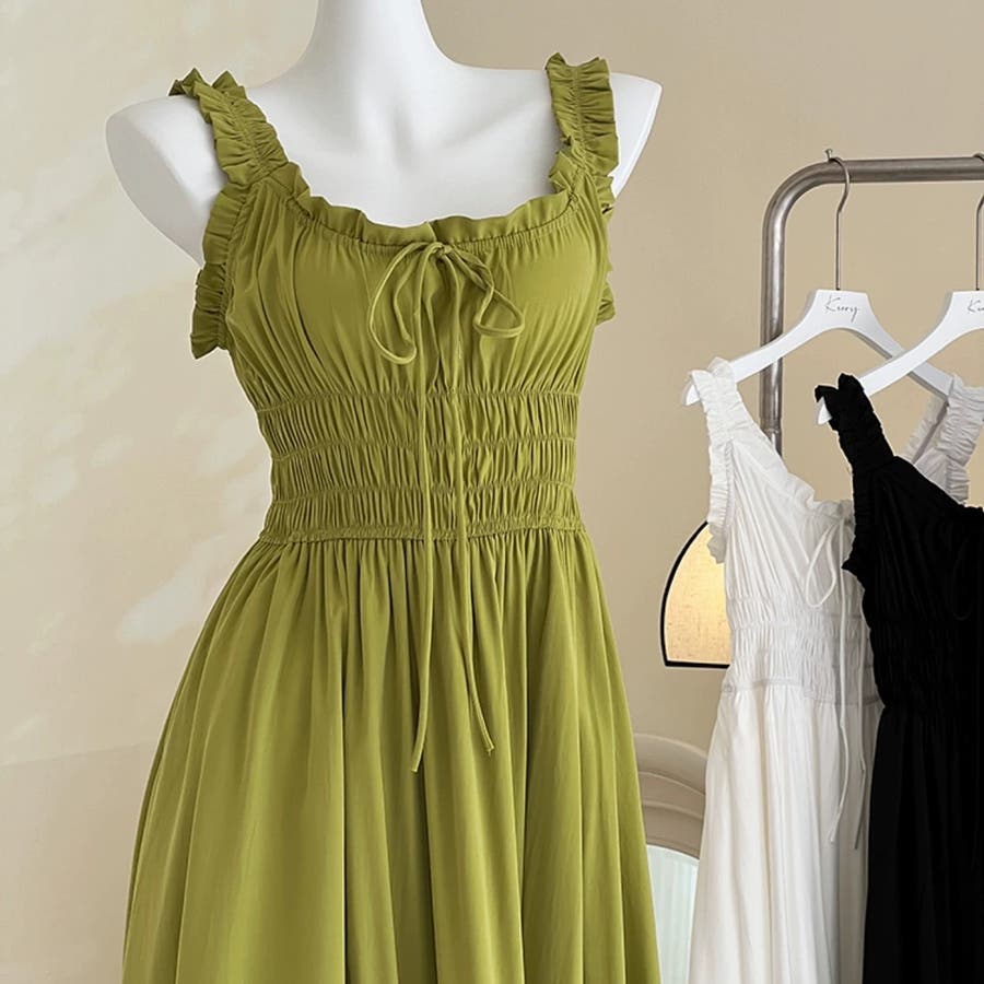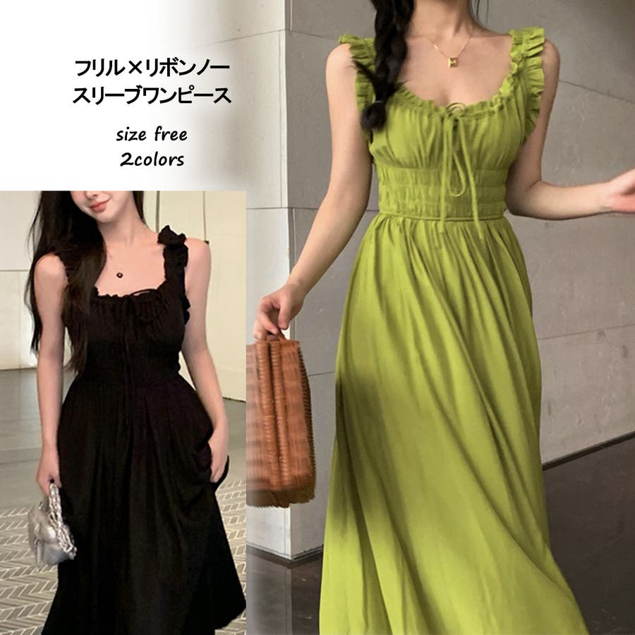レディース ト ワンピース スカート 大人 フロント ギャザー キャミソール タンクトップ シャーリング フリル 夏