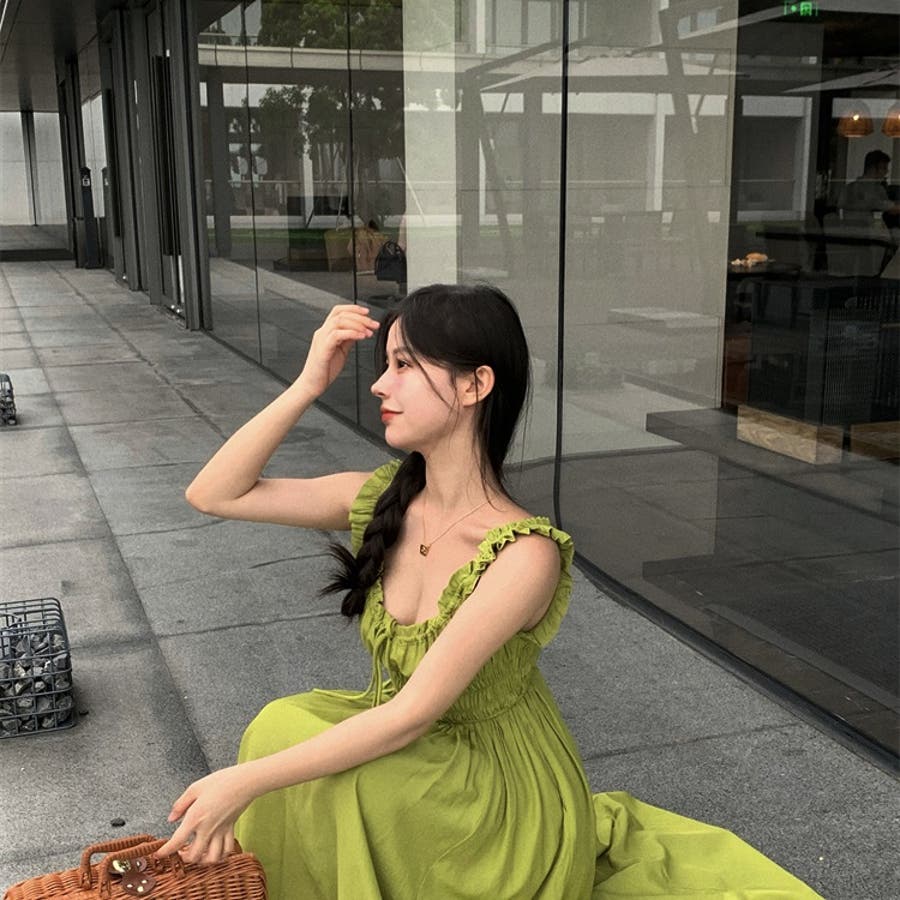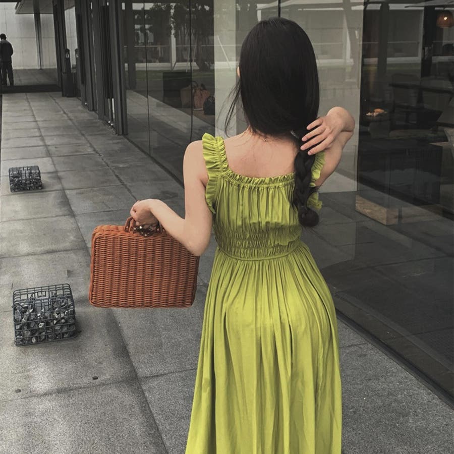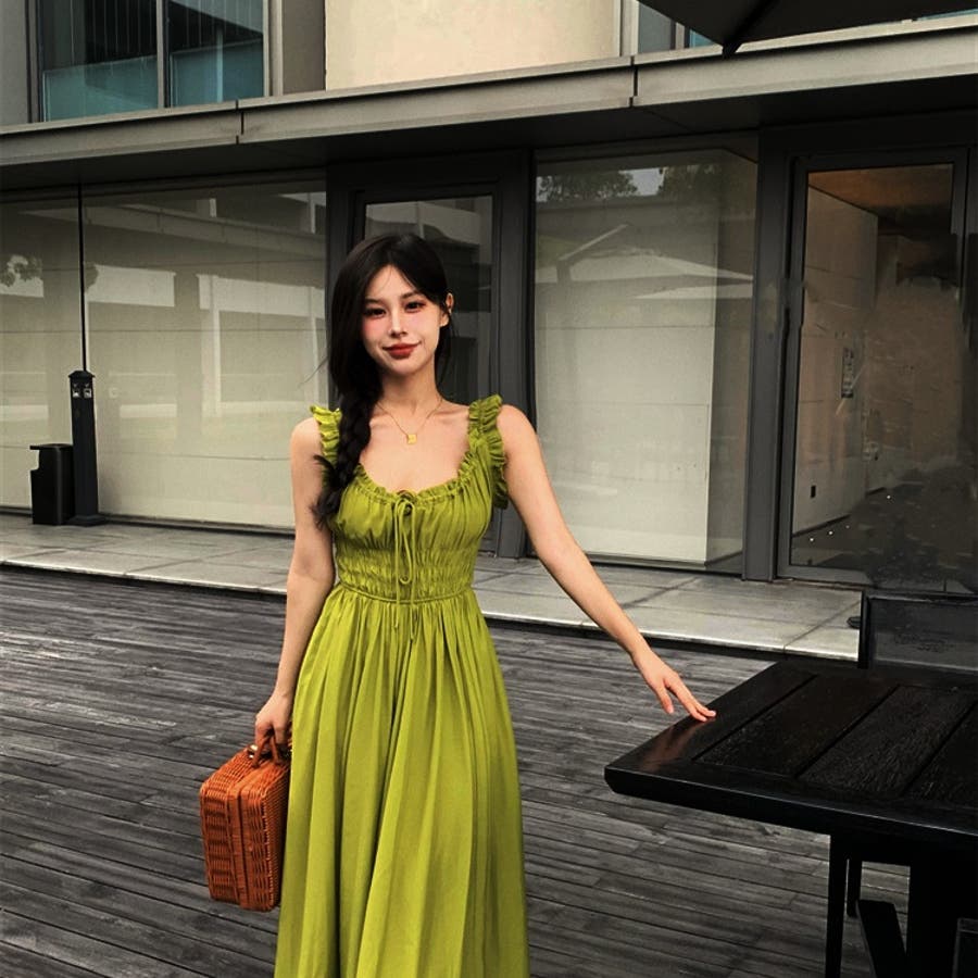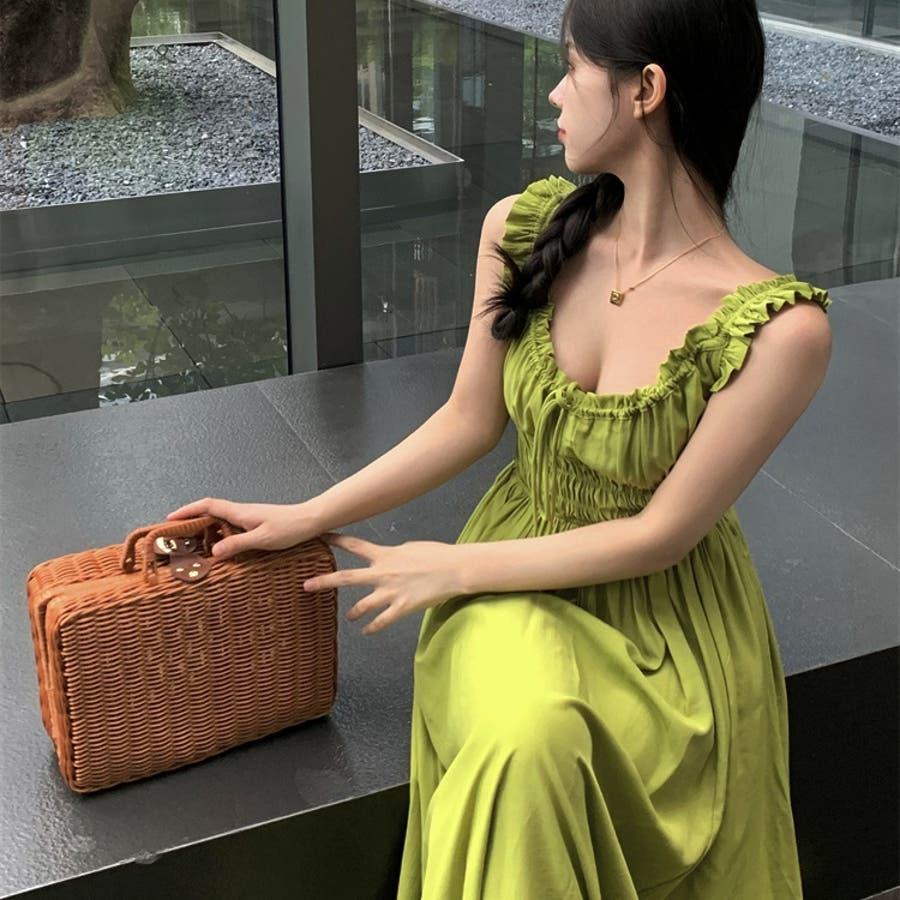 レディース ト ワンピース スカート 大人 フロント ギャザー キャミソール タンクトップ シャーリング フリル 夏