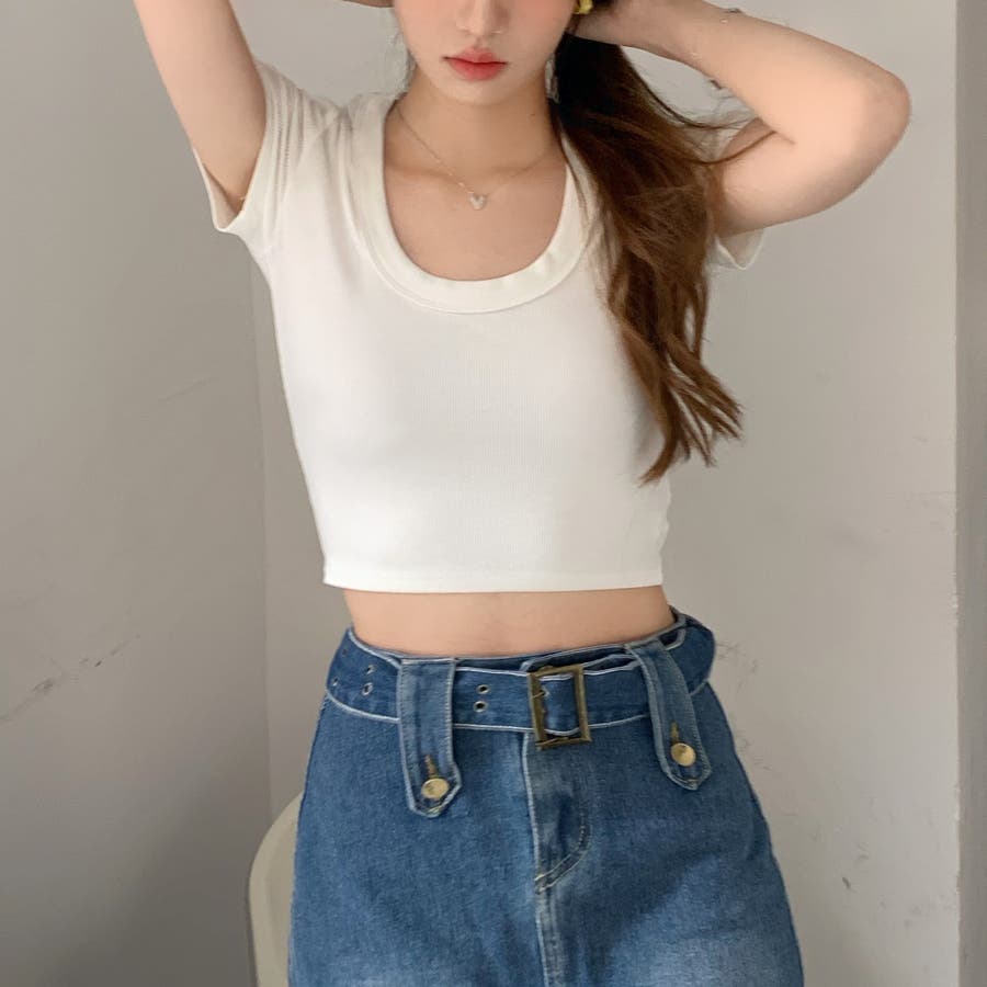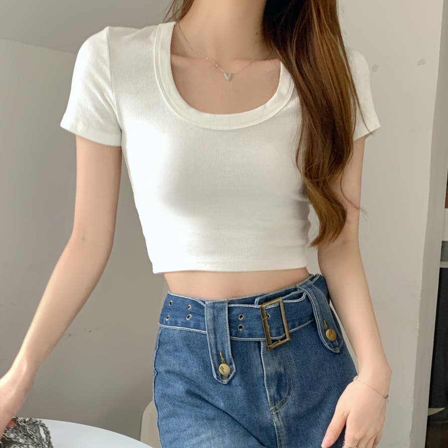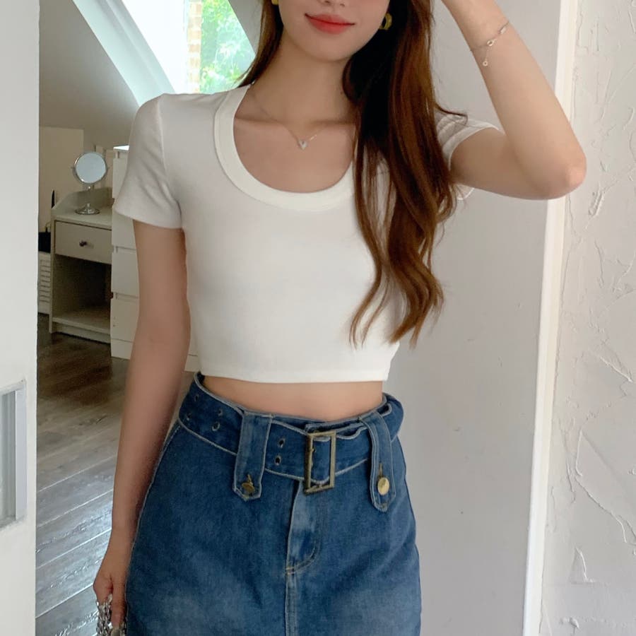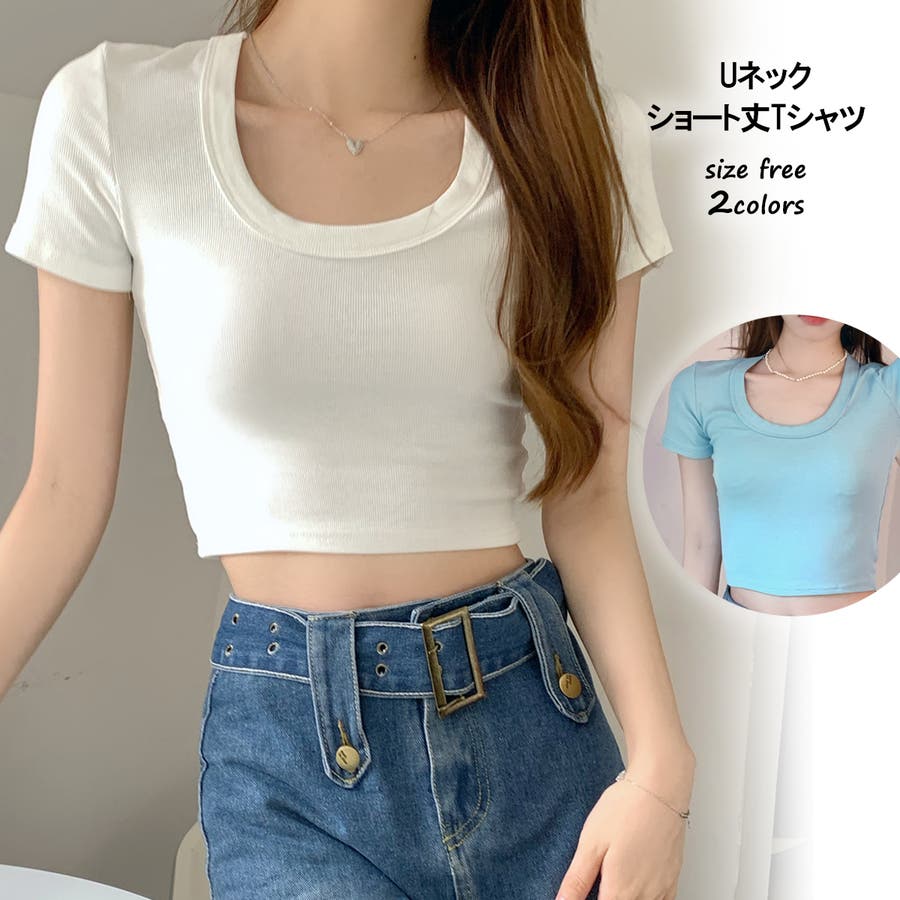 レディース 半袖 トップス カットソー Tシャツ プルオーバー カジュアル 韓国 Uネック ショート 夏