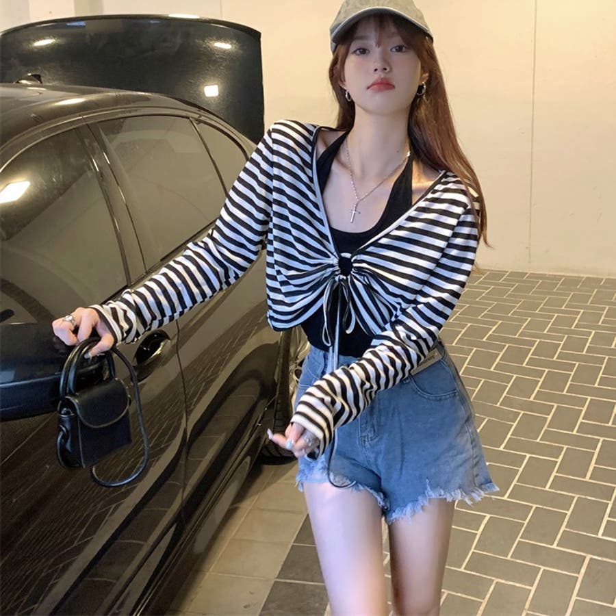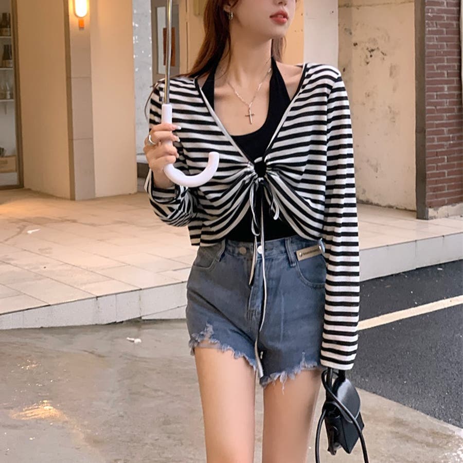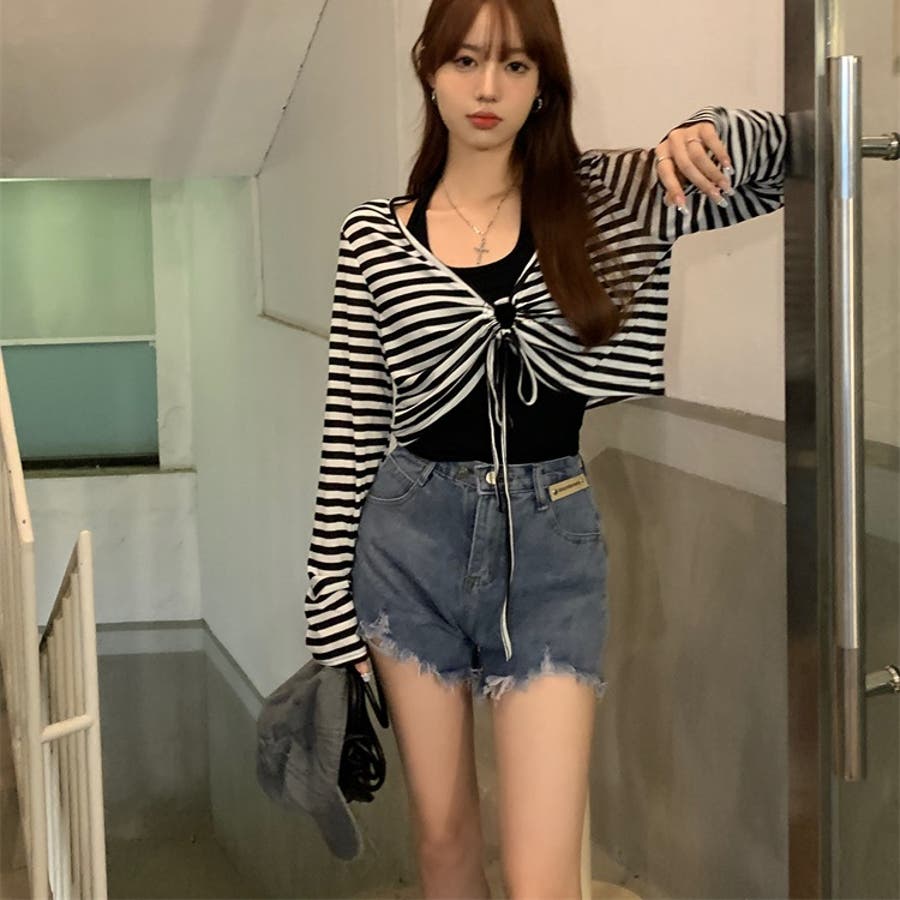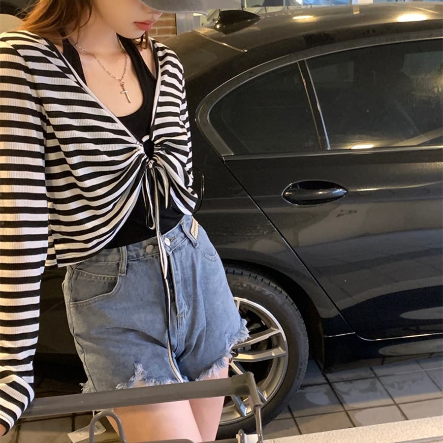 レディース 長袖 トップス カジュアル セット タンクトップ ボーダー ショート丈 春 夏 秋