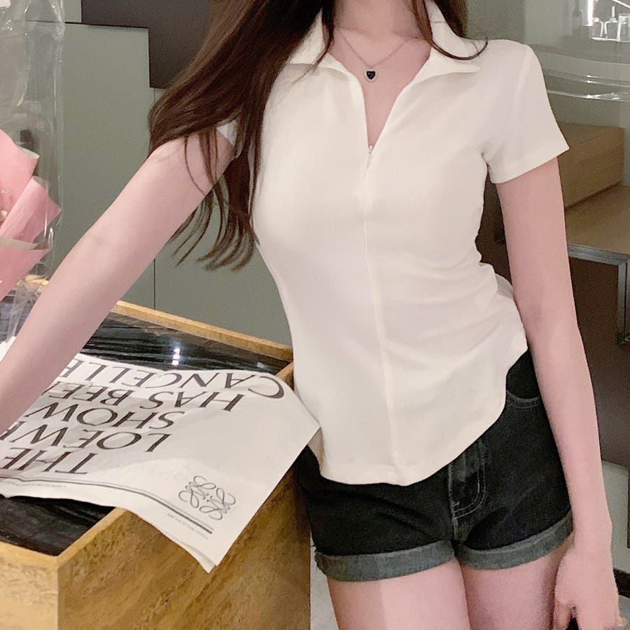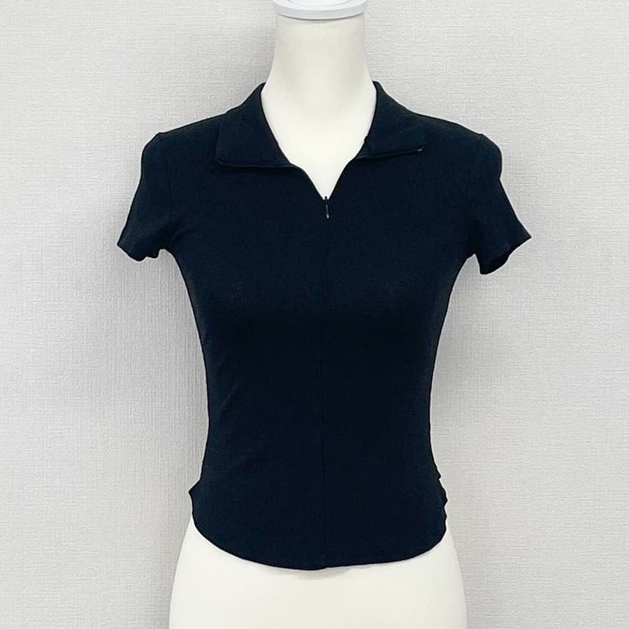 レディース トップス ショート丈 薄手 ジップ Tシャツ