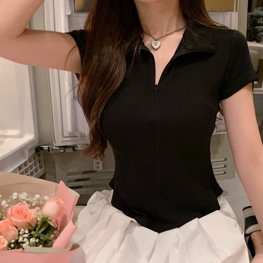 無駄な装飾のないどんなコーデにも合うジップトップス。