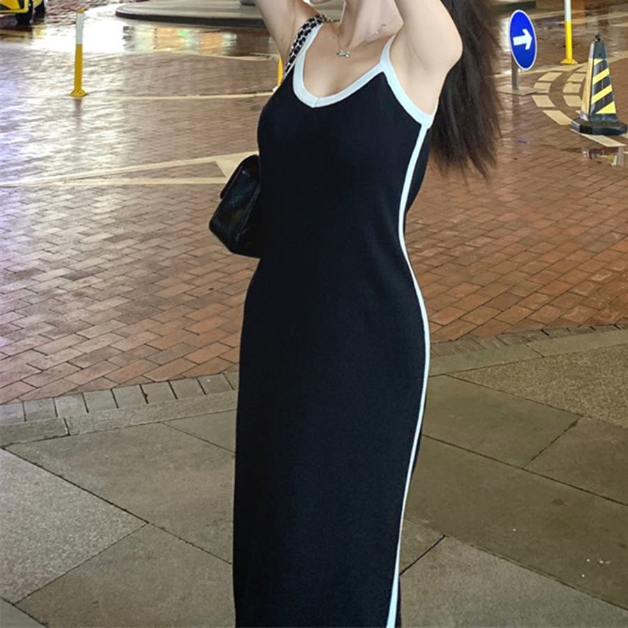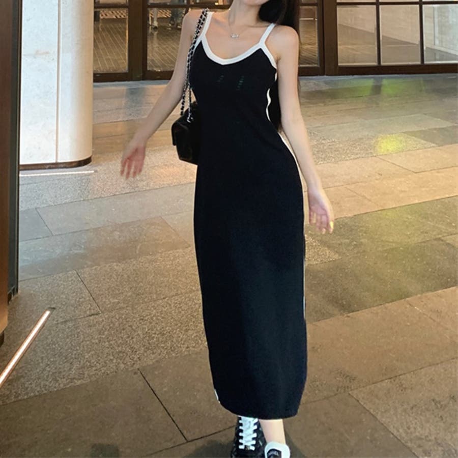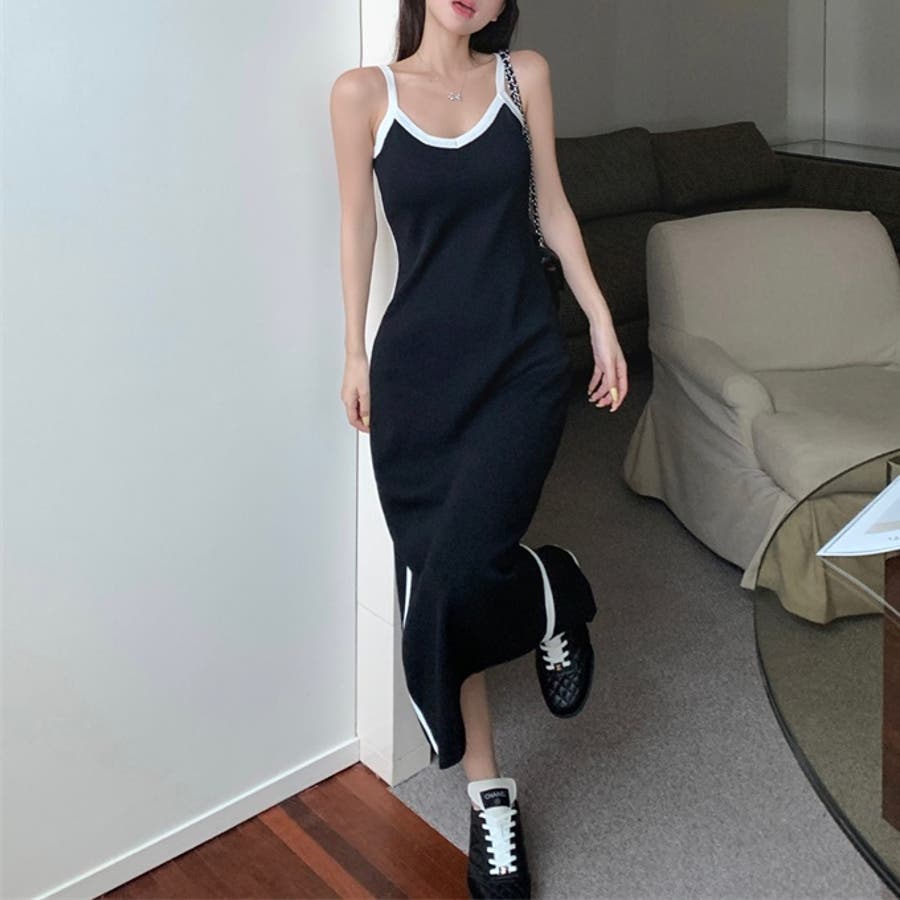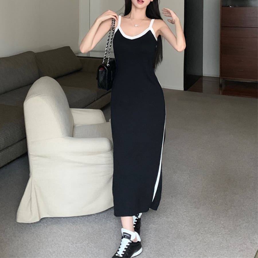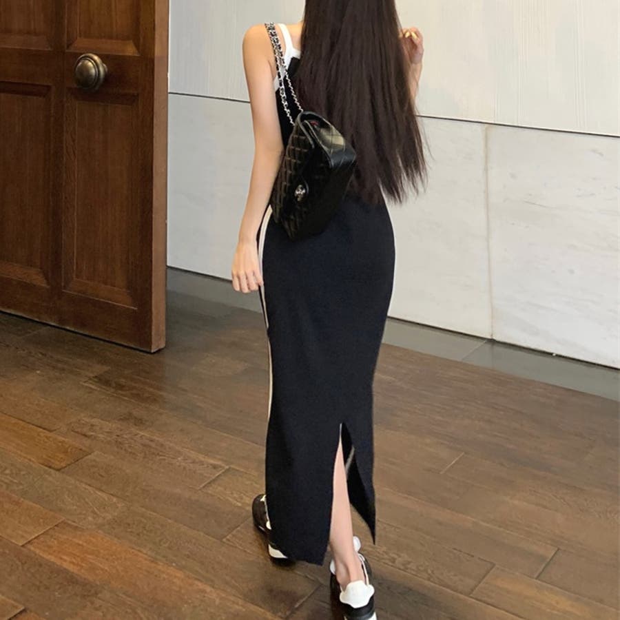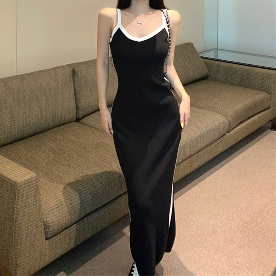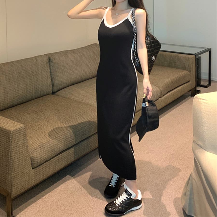 レディース トップス カットソー ニット ワンピース スカート タイト 大人 フェミニン フロント スリット キャミソール 秋 冬 春