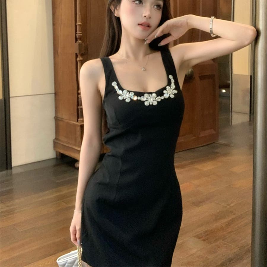 カップ付 ストーンビジューミニワンピース 10382