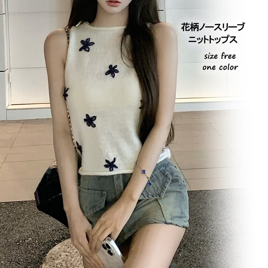 花柄ノースリーブニットトップス 10385