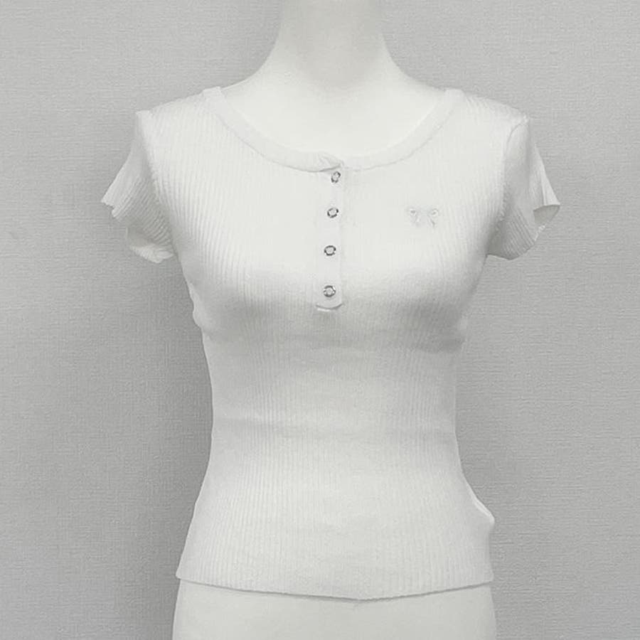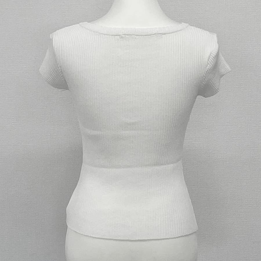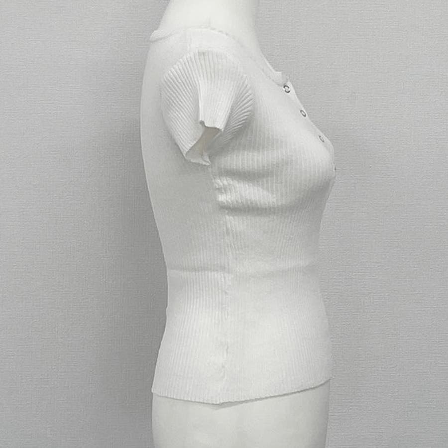 シンプルながらもリブ素材で程よくフィットしてくれるシルエットが女性らしさを演出する1枚。