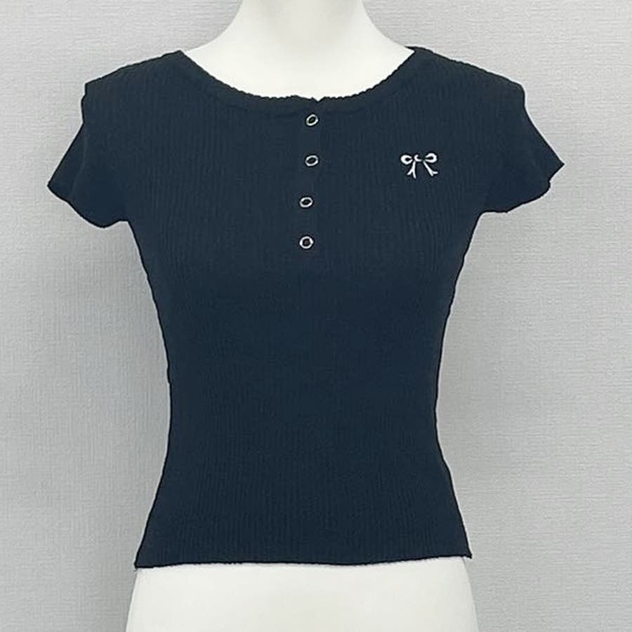 レディース プルオーバー カットソー ニット カジュアル 韓国 ベーシック 刺繍 リブ トップス 春 夏 秋