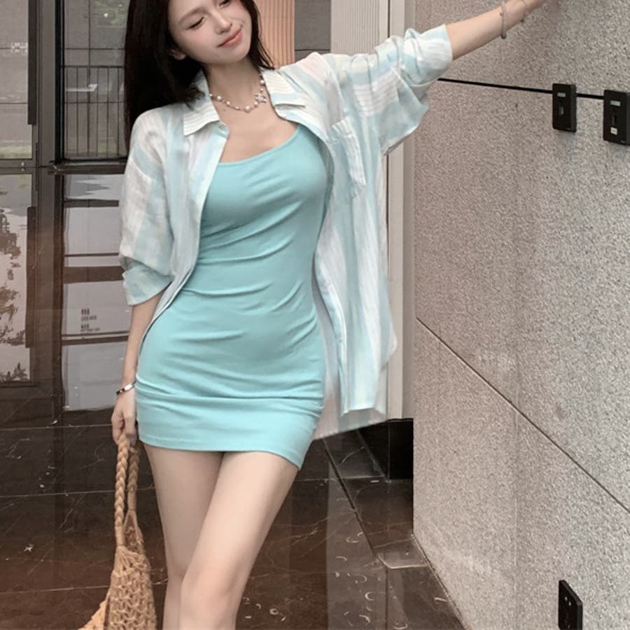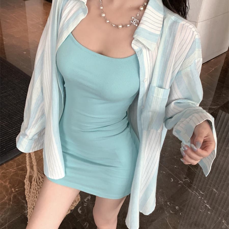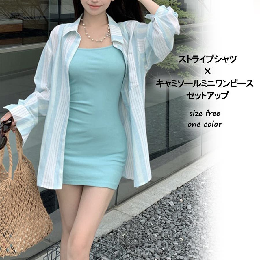 ストライプシャツ×キャミソールミニワンピース セットアップ 10390