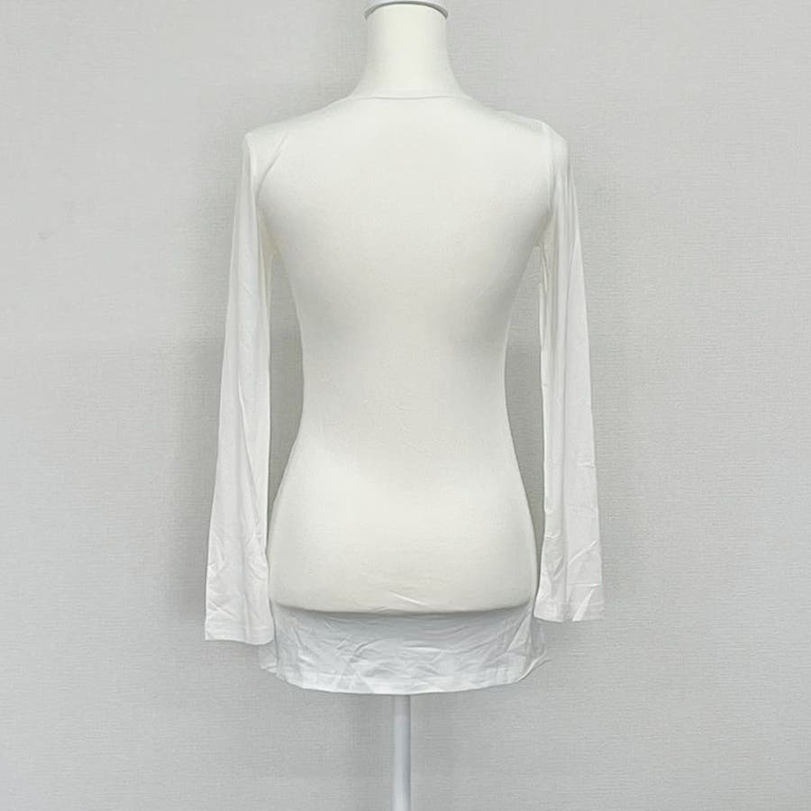 デコルテを綺麗に見せてくれるラウンドネックが女性らしいデザインのロングTシャツ。