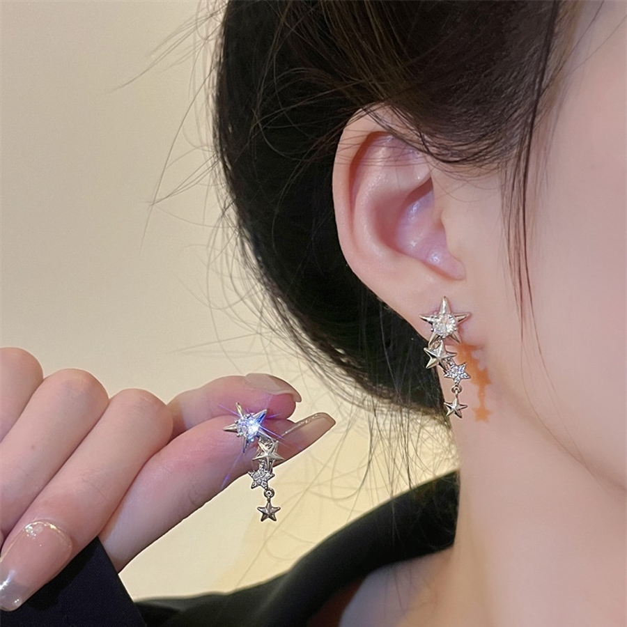 スターモチーフにキラキラ揺れるリトルスターをONしたピアス。