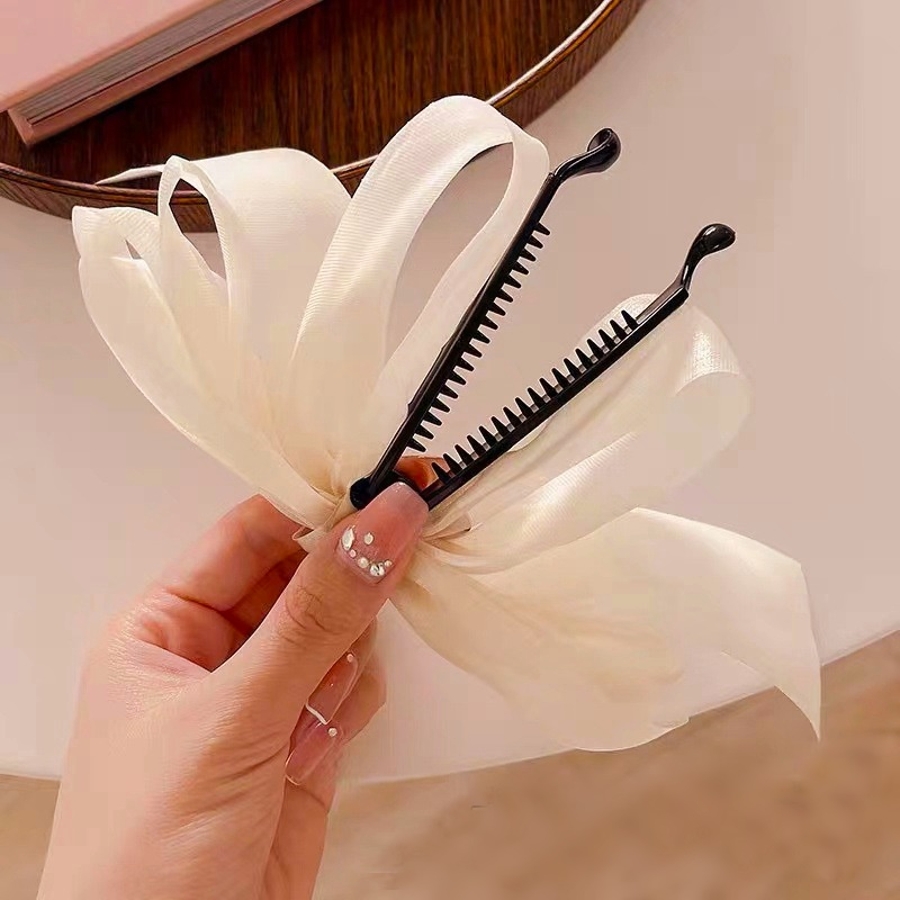 レディース アクセサリー アクセ 小顔 ガーリー かわいい ヘアクリップ パーティー ヘアクリップ シフォン リボン モチーフ ヘア クリップ