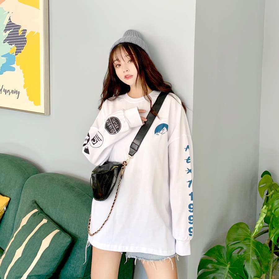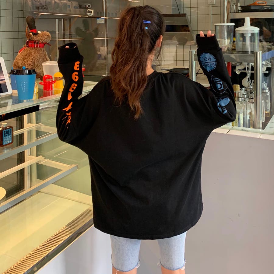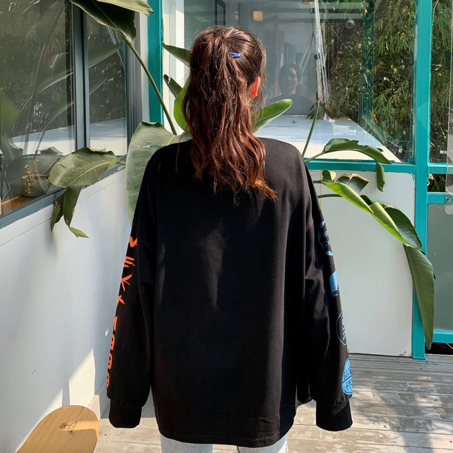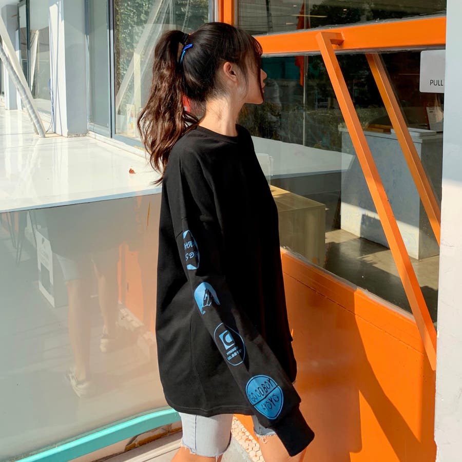 レディース 長袖 トップス カットソー シンプル カジュアル ストリート カジュアル プリント ロングTシャツ 体型カバー
