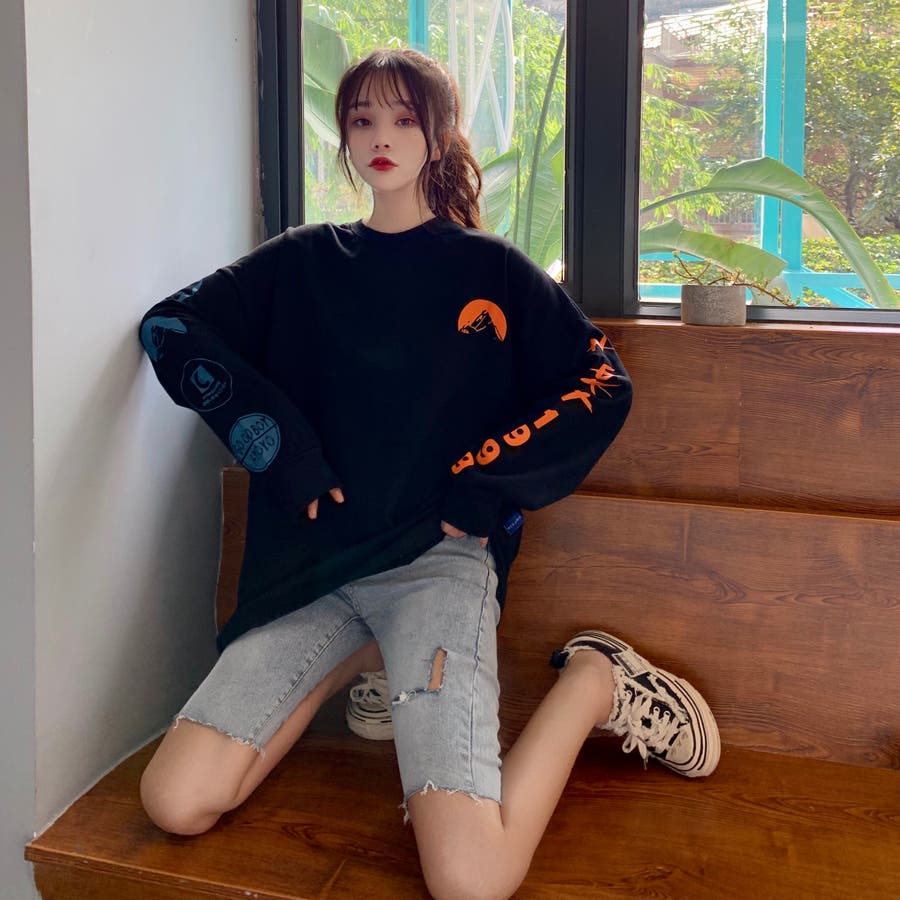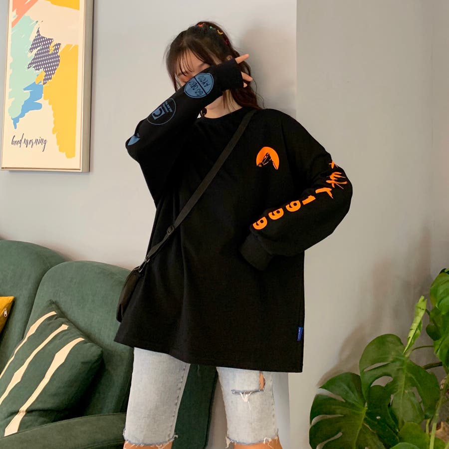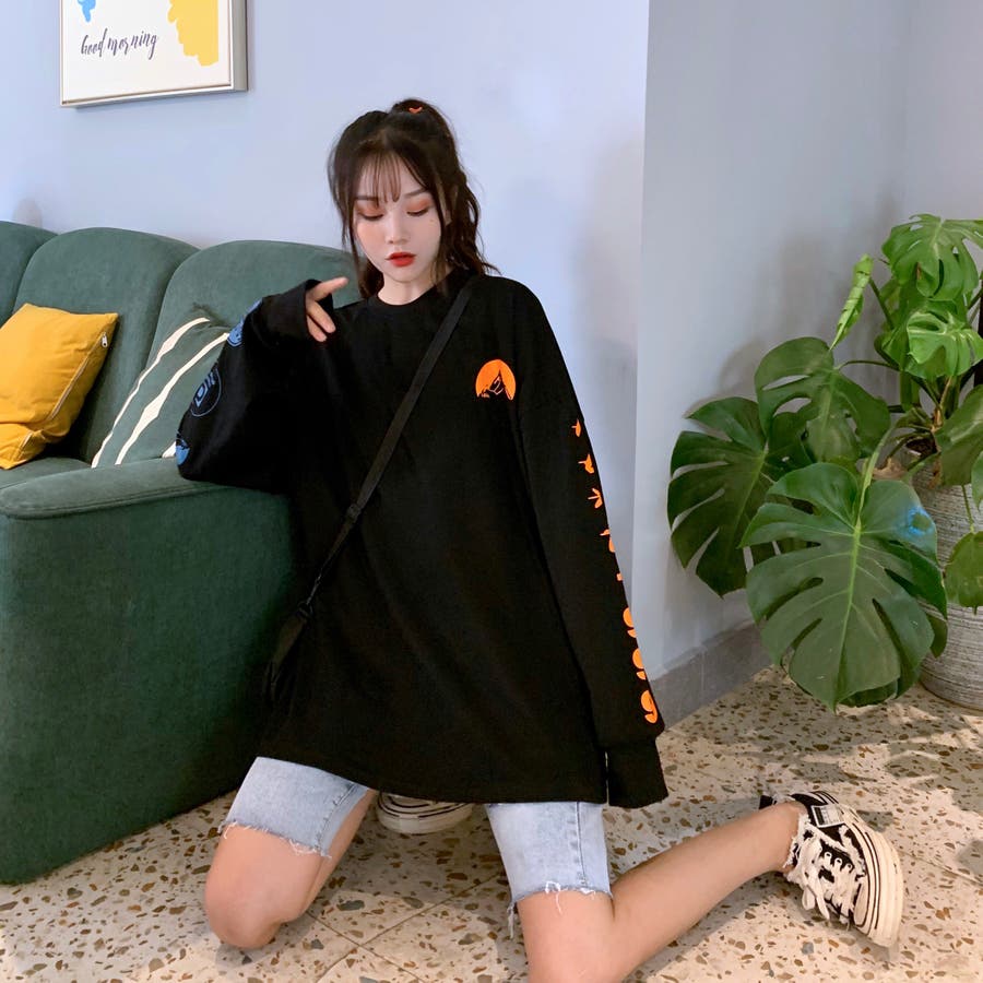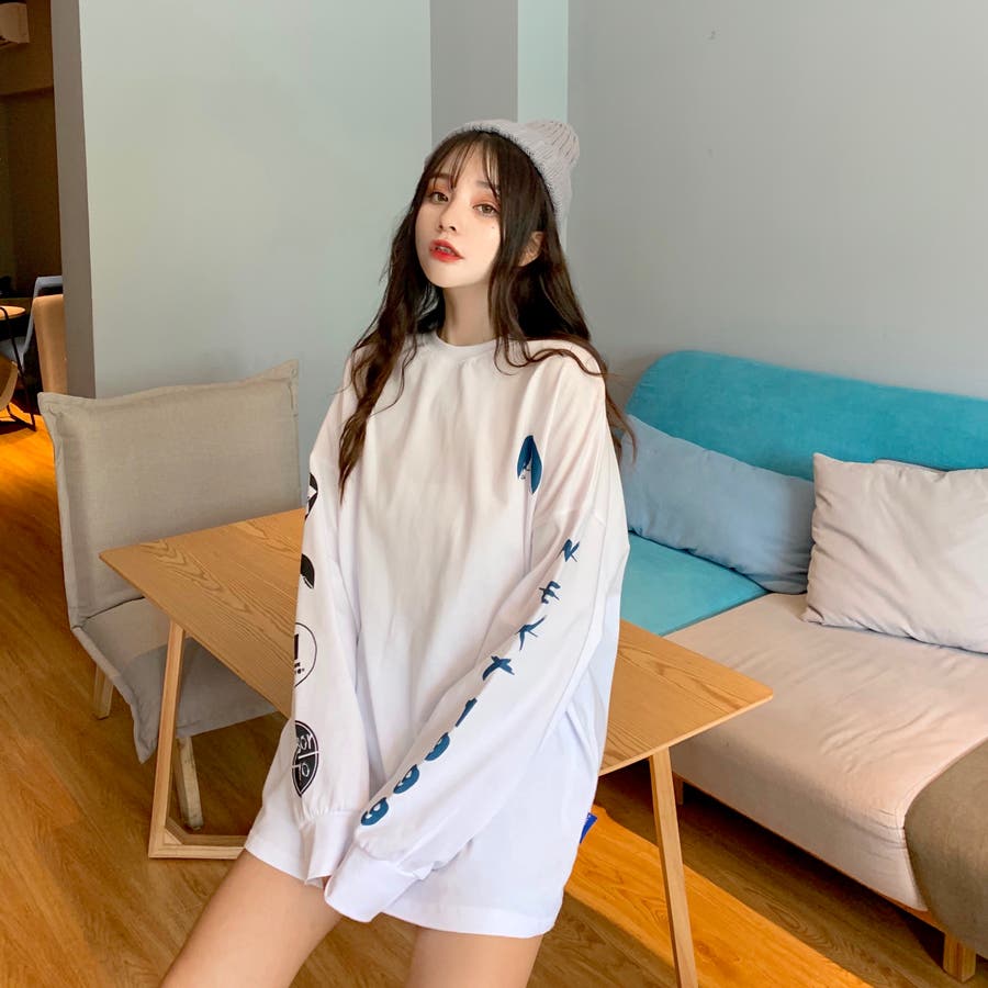 レディース 長袖 トップス カットソー シンプル カジュアル ストリート カジュアル プリント ロングTシャツ 体型カバー