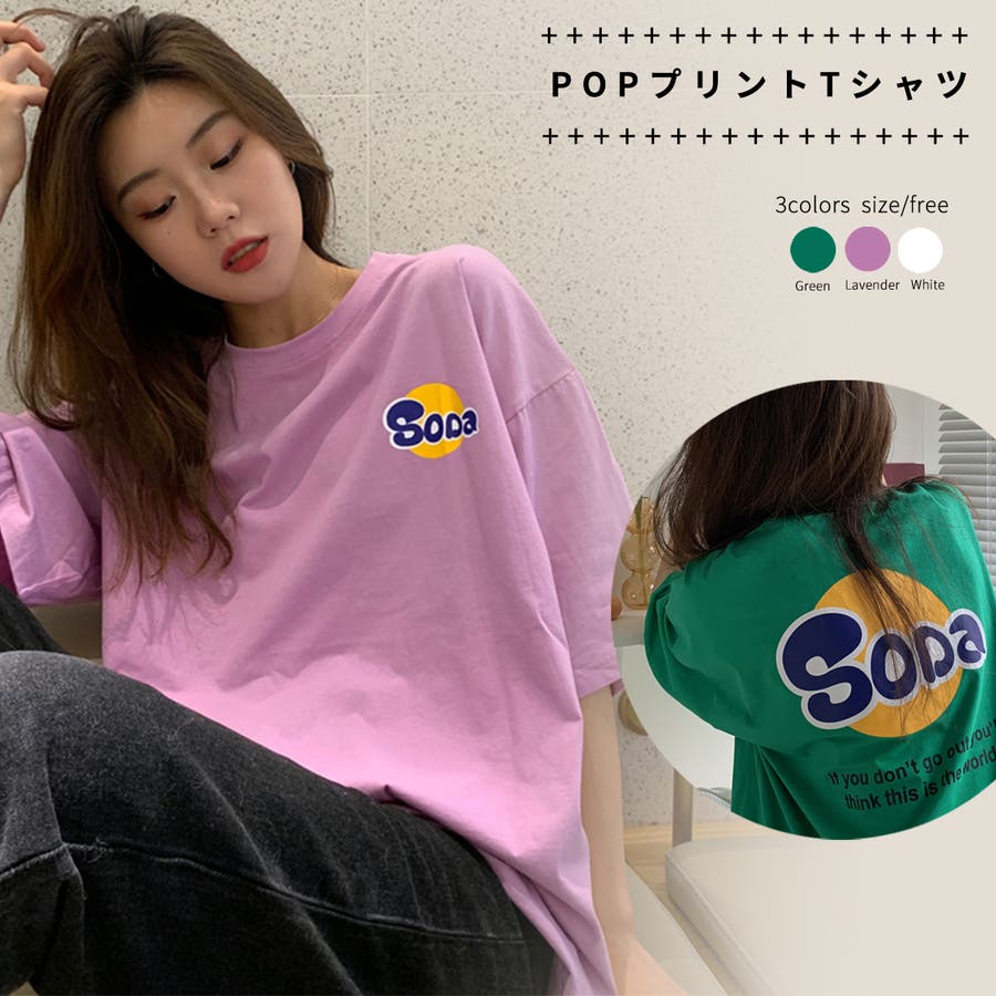 レディース 半袖 トップス カットソー Tシャツ プルオーバー カジュアル 韓国 フロント cute カラフル プリント POP 半袖 Tシャツ 体型カバー