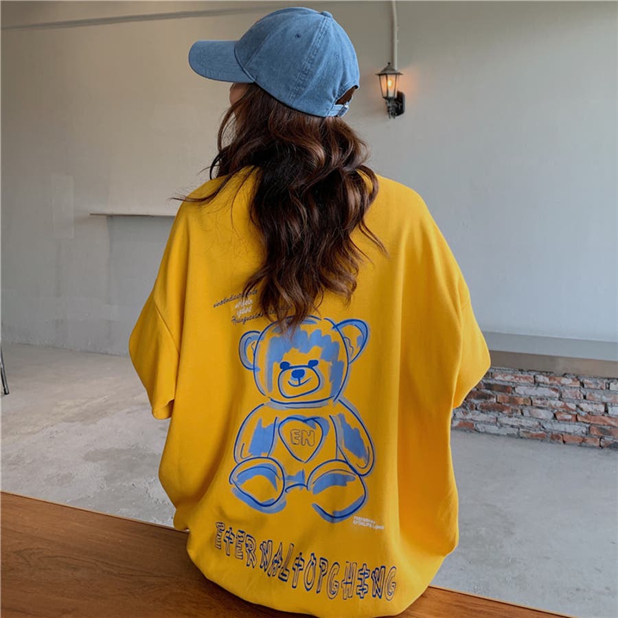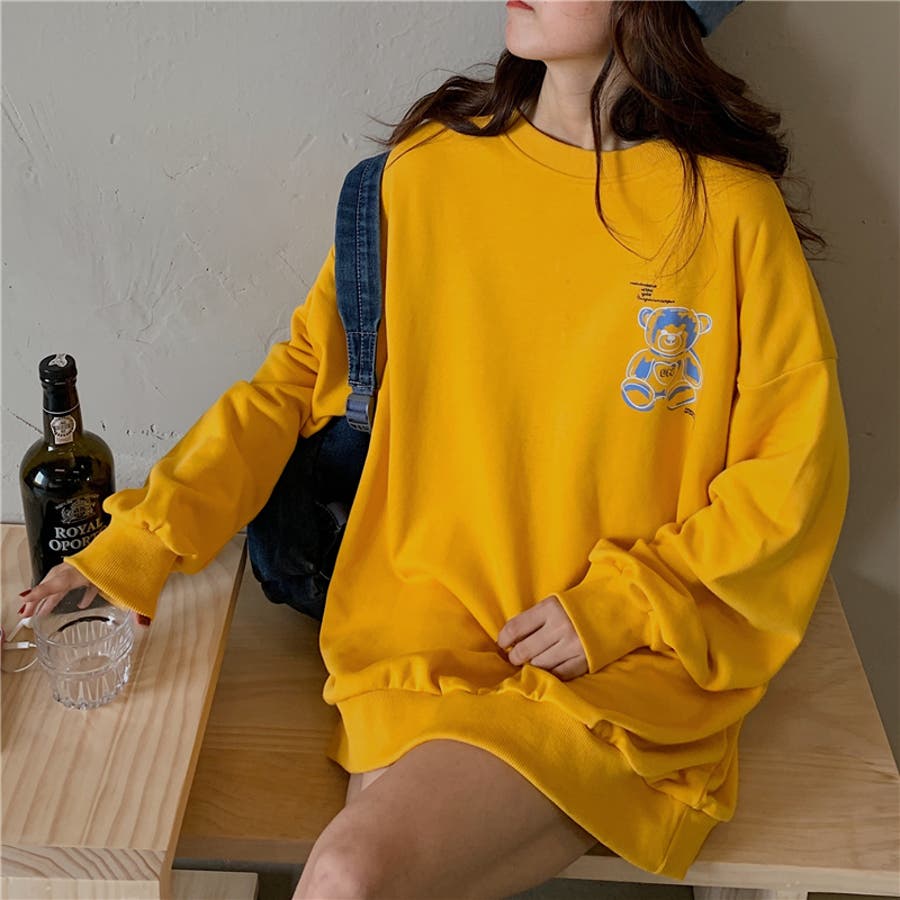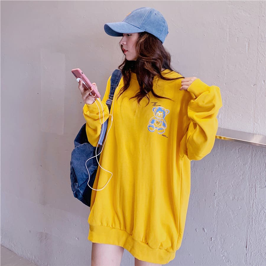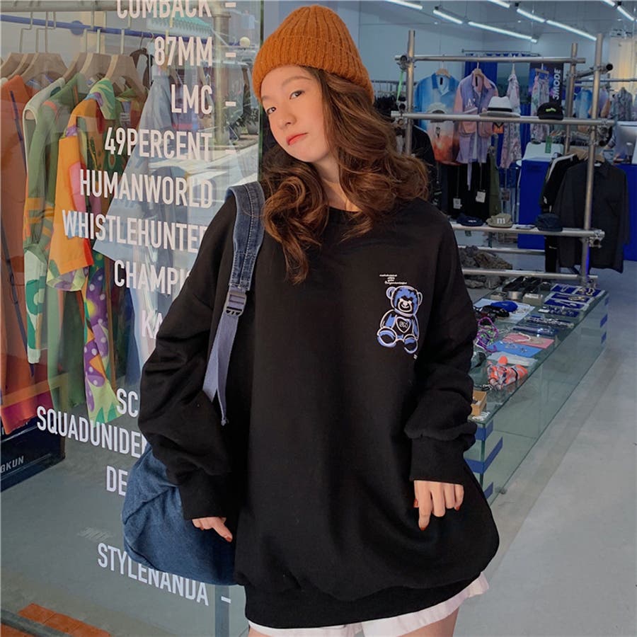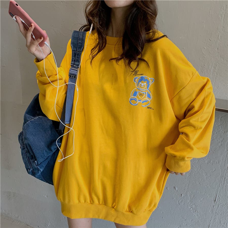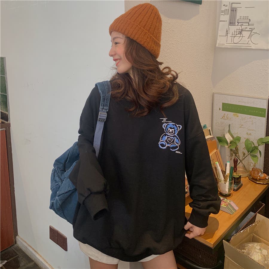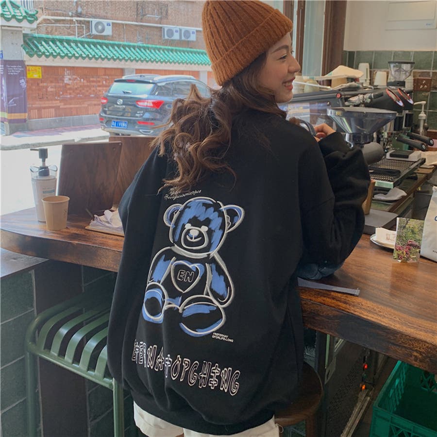 レディース トップス パーカー スウェット 長袖 カジュアル 韓国 女子 ベアー バック コンシャス プリント ベーシック トレーナー くまさん イラスト プリント 薄手トレーナー 秋 秋服 冬 韓国ファッション 体型カバー