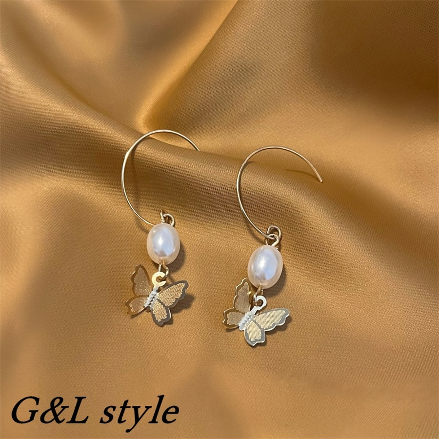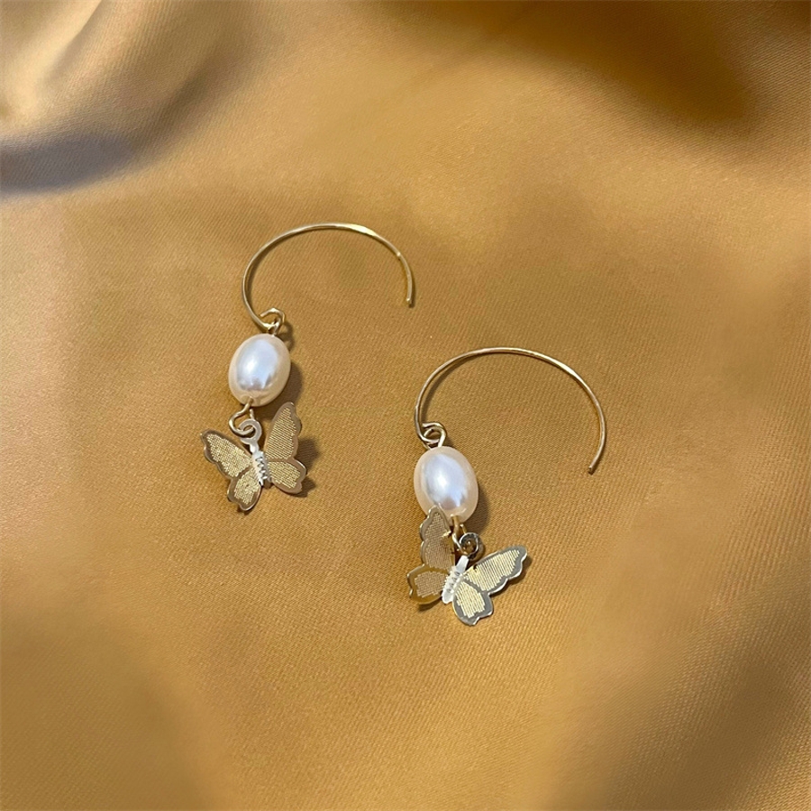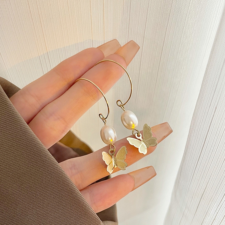 レディース アクセサリー イヤリング ピアス 小顔 ガーリー かわいい パーティー 結婚式 バタフライ 蝶 モチーフ ゴールド ピアス パール