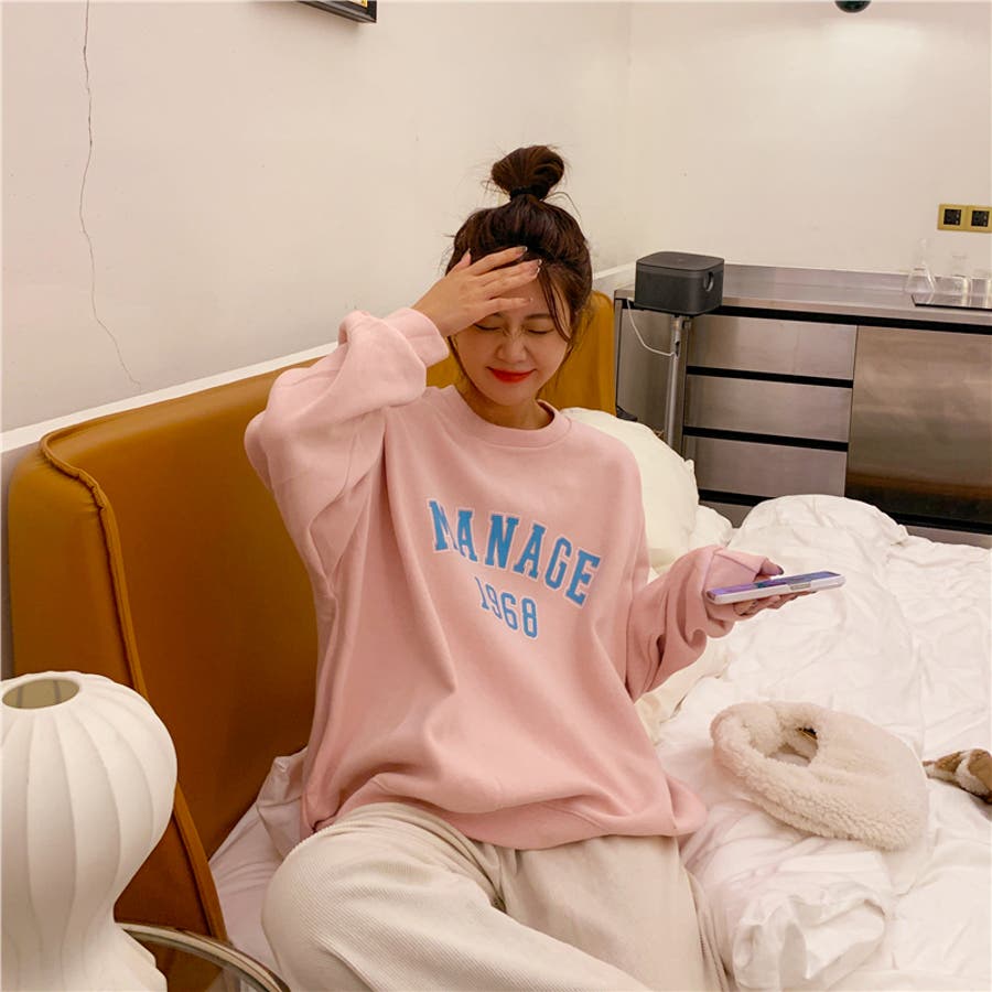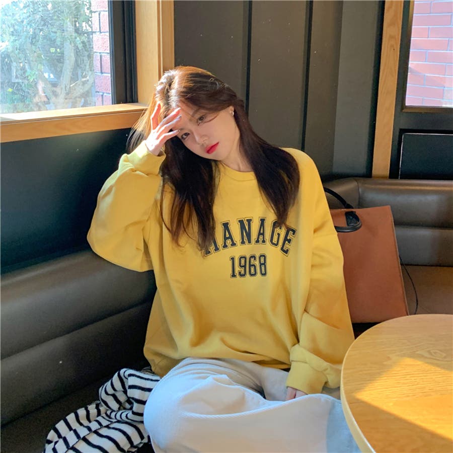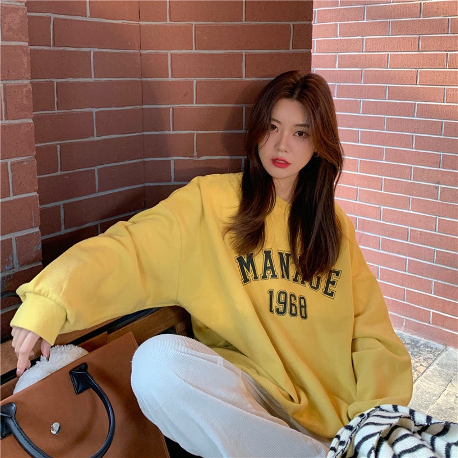 レディース トップス パーカー スウェット 長袖 カジュアル 韓国 女子 フロント ロゴ プリント トップス ロングTシャツ 春 秋 カレッジ