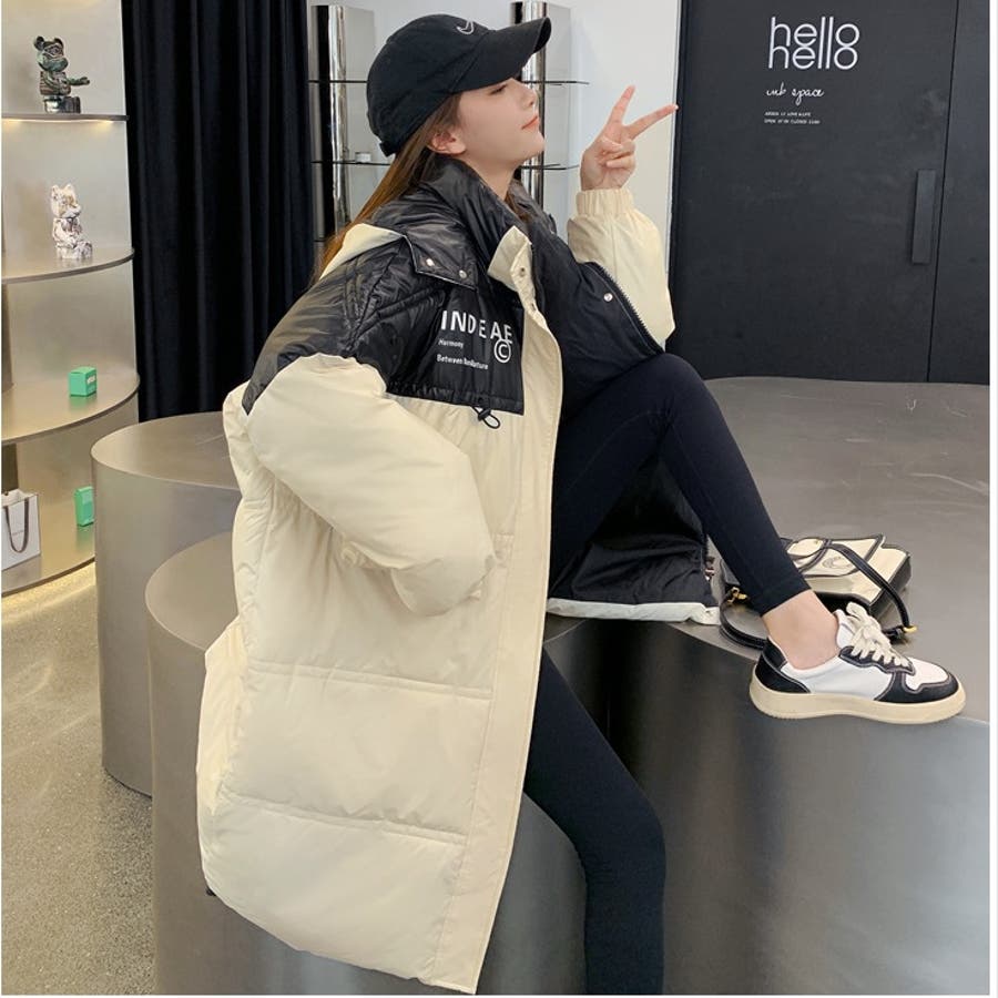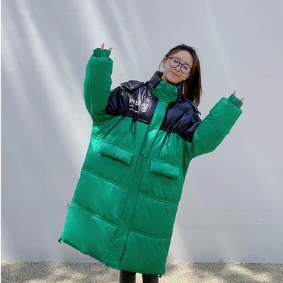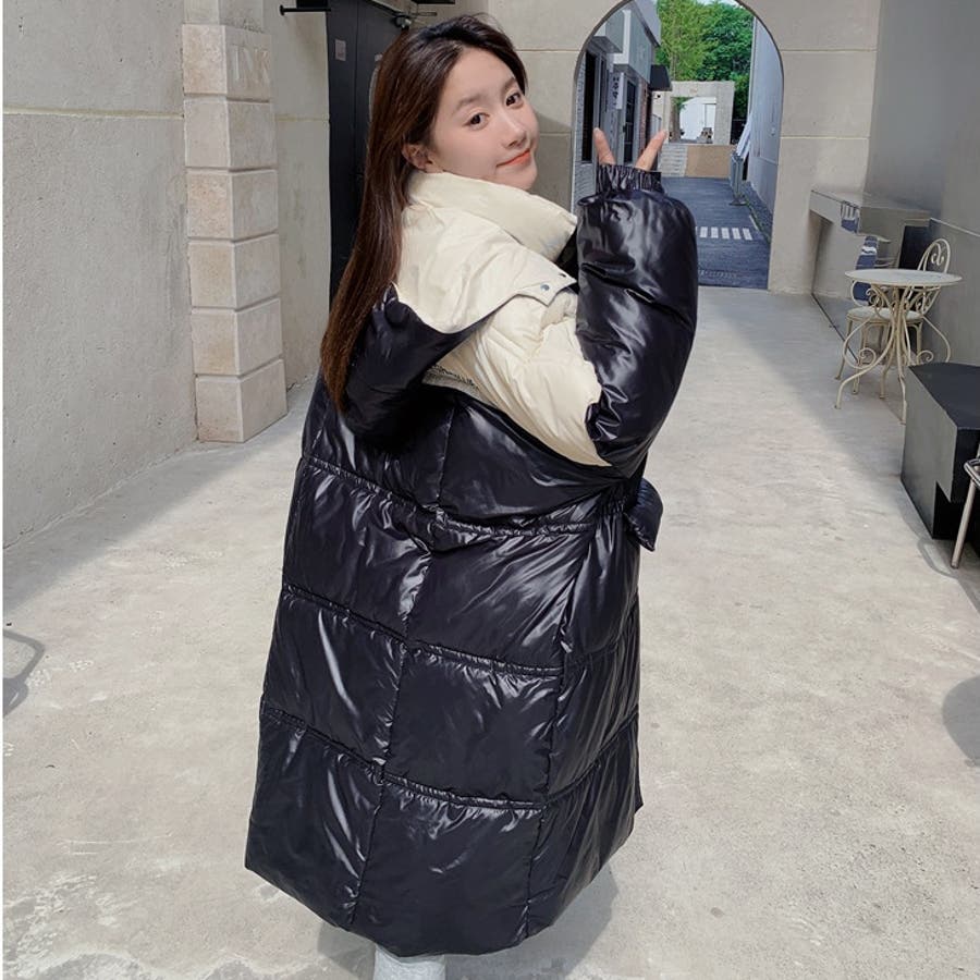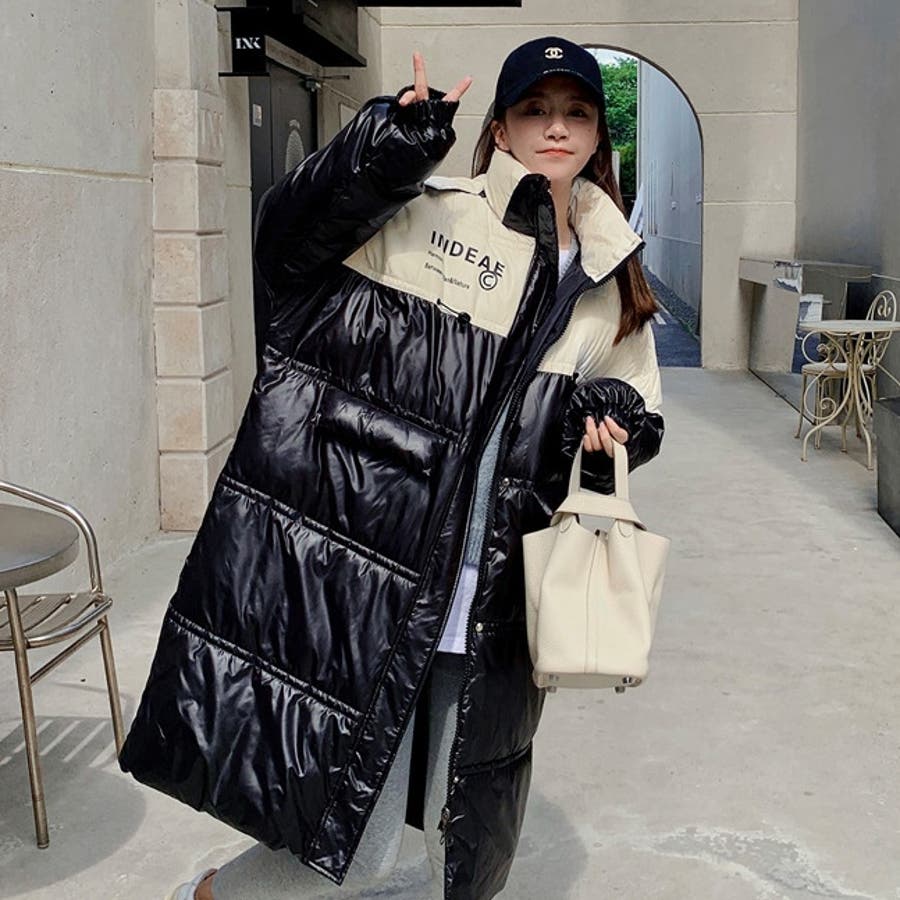 レディース 長袖 トップス アウター 中綿 MA-1 スカジャン スタジャン ブルゾン ストリート ロゴ ダウン コート 秋 冬 中綿 ボリューム ダウンコート バイカラー 光沢 ロング