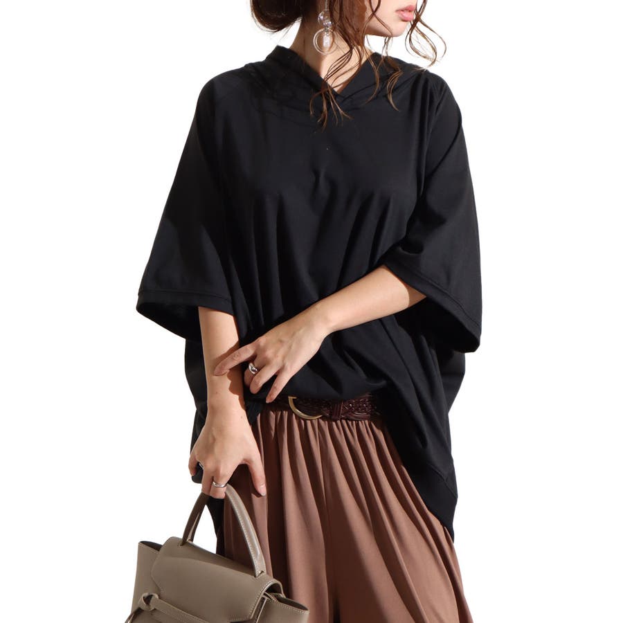 コクーンシルエットも体型を拾わず、袖丈は半袖~5分袖なので二の腕カバーもばっちりです♪