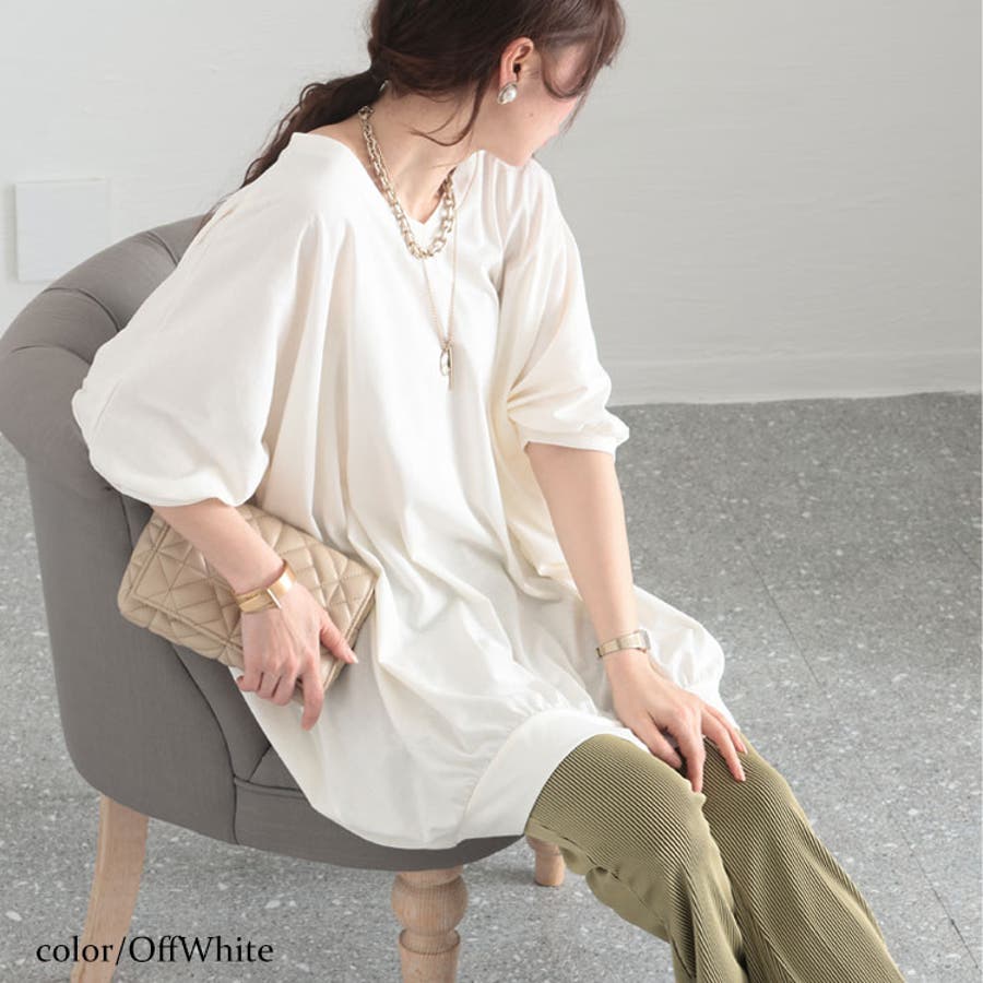 たっぷりギャザーで余裕を持たせたデザインのドルマンチュニックの登場です。