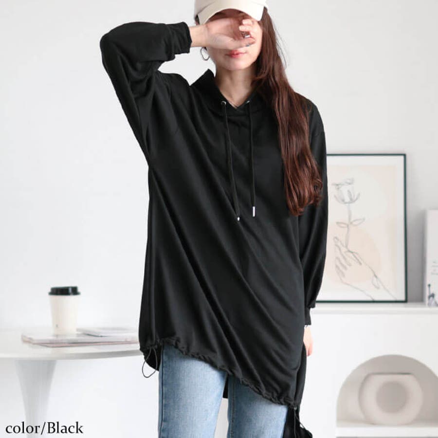裾ドロストでシルエット自在♪フェイクフードプルオーバー