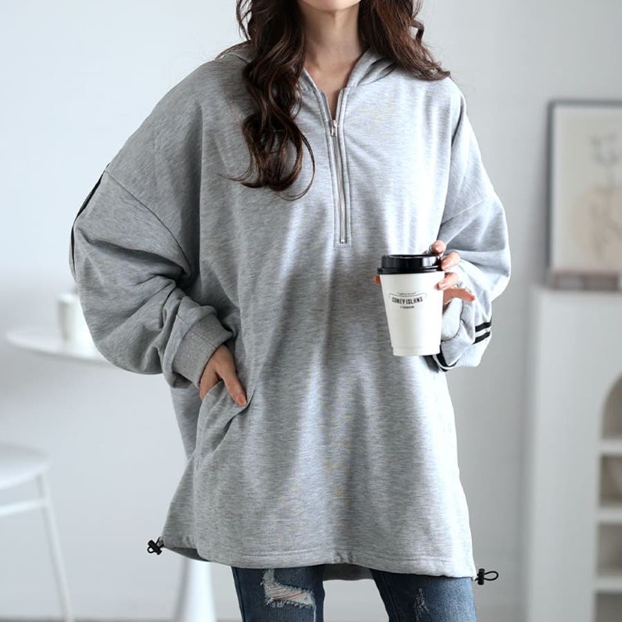 ゆったりと着られるオーバーシルエットの体型カバー&こなれたルックス。裾ドローコード付きで丈感やシルエットも変化でき、着回しの幅が広がります。カジュアル好きさんにオススメのパーカーです。