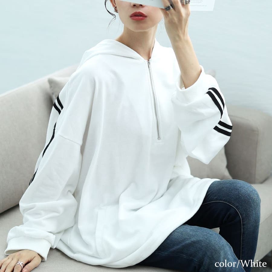 スポーティーな印象のダブルラインにハーフジップでストリート感をプラスし、ラフに着こなすだけで旬のスタイルに。