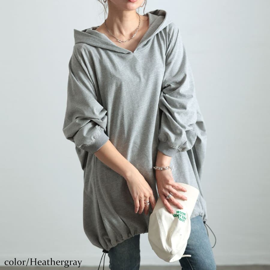 大きいサイズレディース チュニック 裾ドロストラグランパーカーチュニック