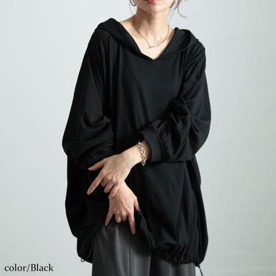 斜めの切り替えラインがスタイリングをすっきりとさせるプルオーバーです。