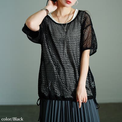 メッシュ生地のトップスは、ゆったりとしたシルエットで、ふんわりと体型カバー。窮屈感のないタンクトップはレイヤードしやすく、安心丈でヒップラインもカバー。広めのラウンドネックでお顔周りもすっきり見えします。
