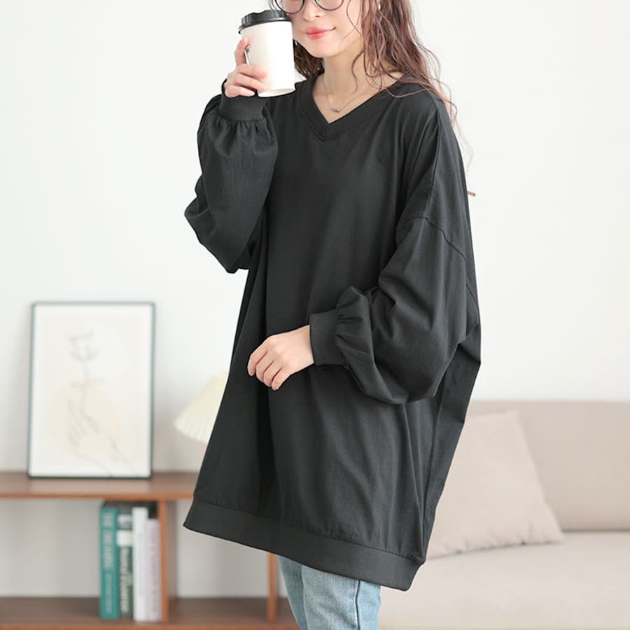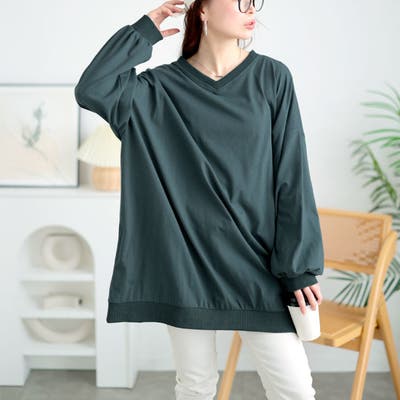 ゆったりとしたワイドサイズのVネックチュニックです。
